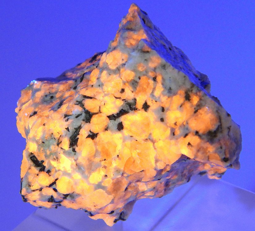 モンサンチラール産の方ソーダ石で紫外線長波で蛍光します。