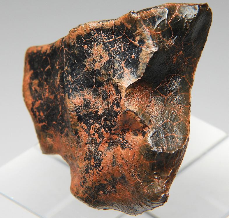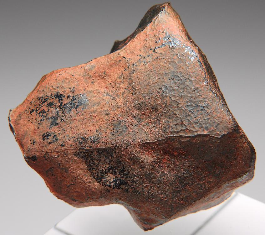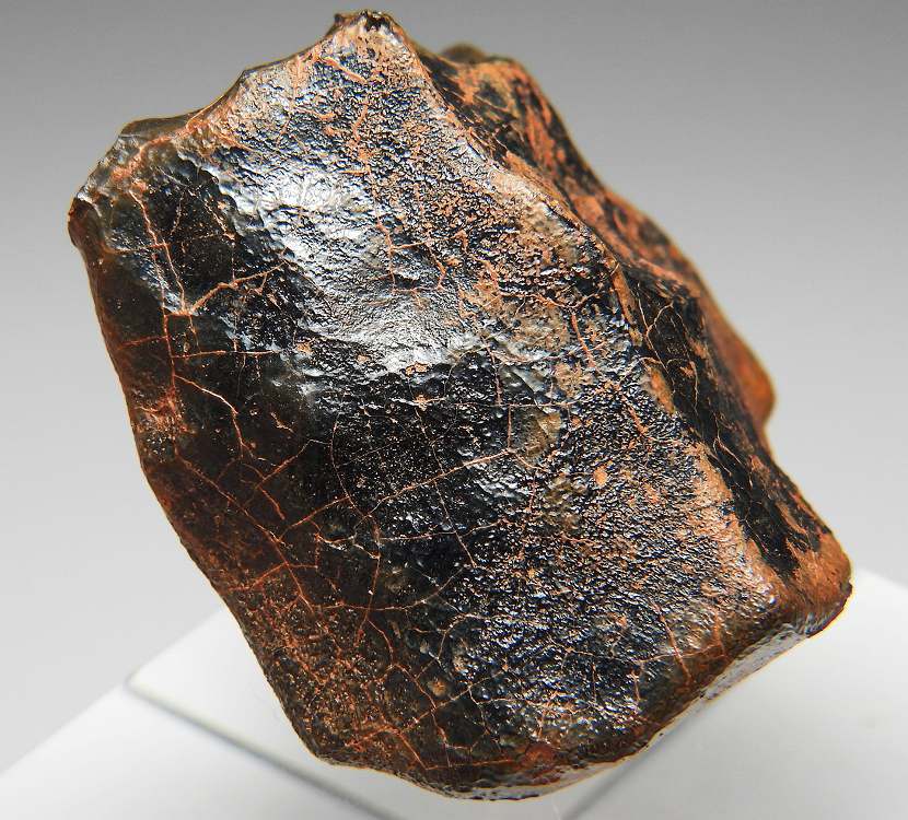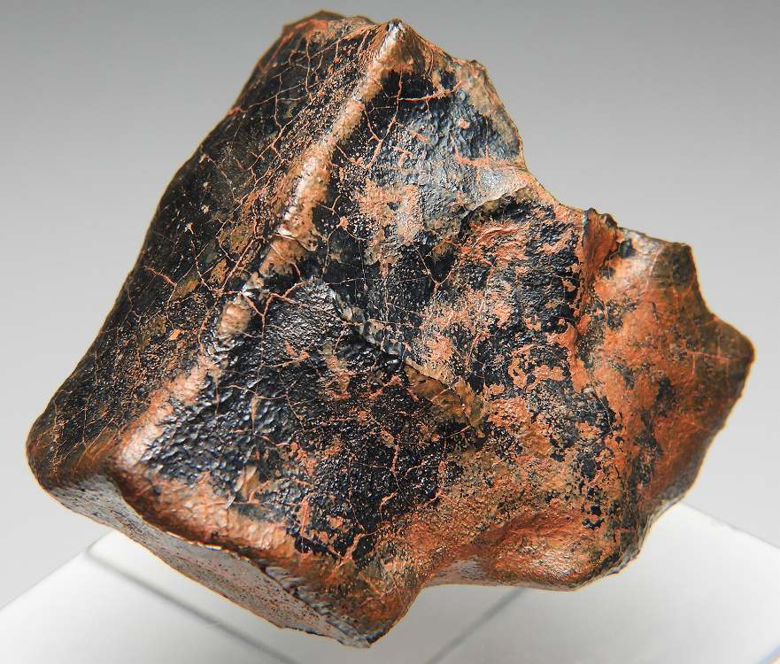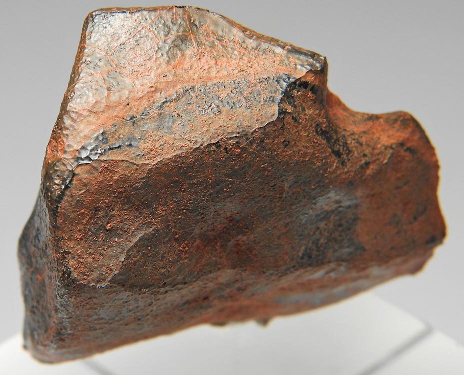 ミルビリリ隕石は落下目撃されたEucriteエイコンドライト(HED隕石)。Caに富むため溶融表皮が特徴的で内部は斜長石の白色ベースに黒色の輝石部分が混在しています。回収地点の鉄分を含む土壌の影響で表面に特徴的な赤茶色が見られます。母天体は小惑星ベスタと推定されています。未切断品。