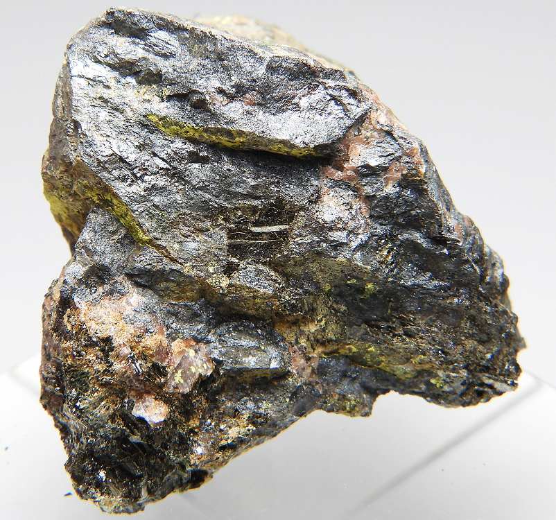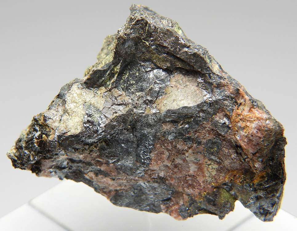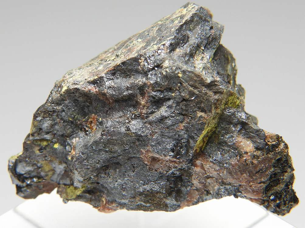 ダビイド石のLaリッチタイプ。カルノー石が共生し、メタミクト化した破面が観察できます。原産地標本。約10μSv/h。