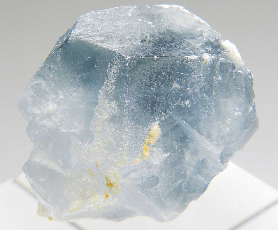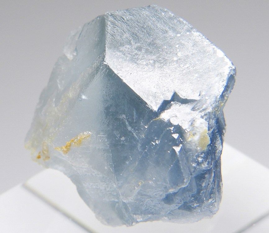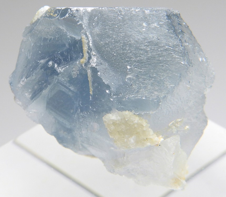 この産地ではカルサイトを伴って産出し、結晶内に濃淡がみられる天青石です。