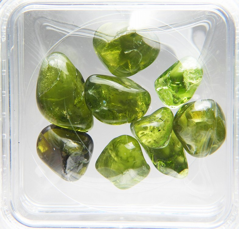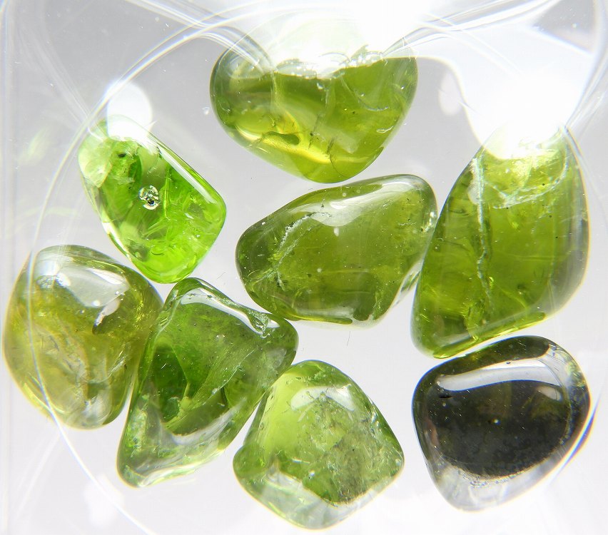 大きな結晶で産するペリドット。サンドバレルで表面研磨された綺麗な標本です。