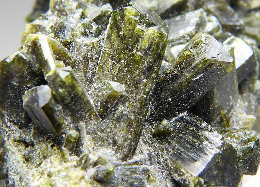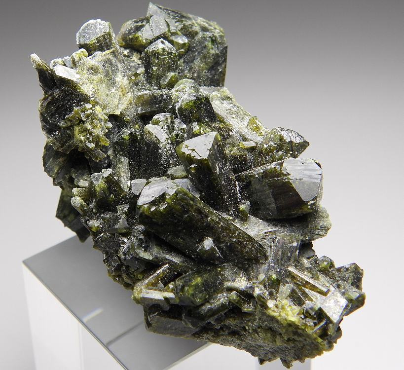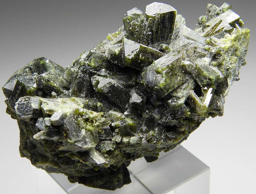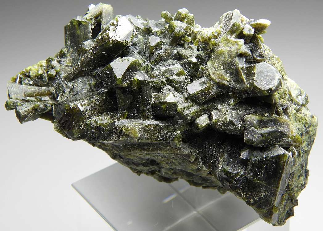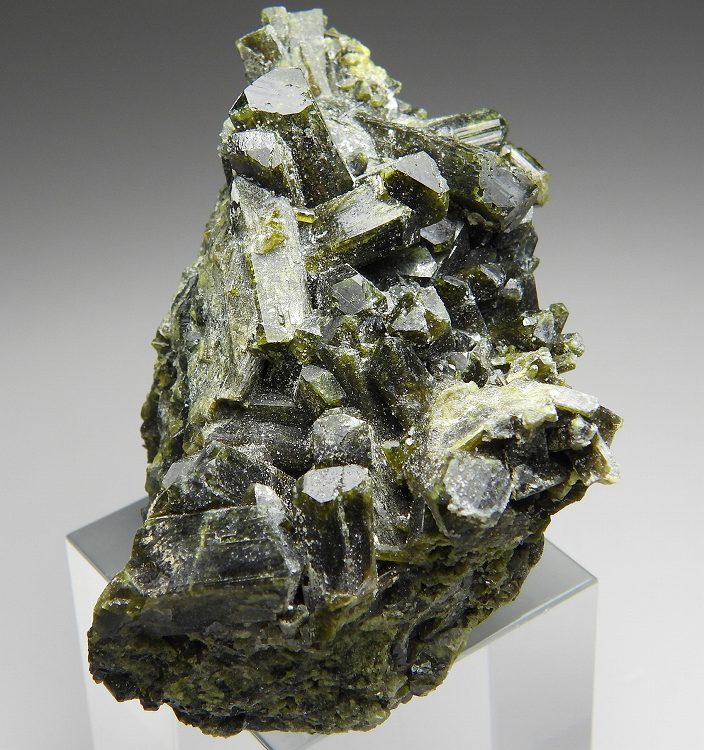 艶やかなエピドートの結晶群です。キャビネットサイズ。
