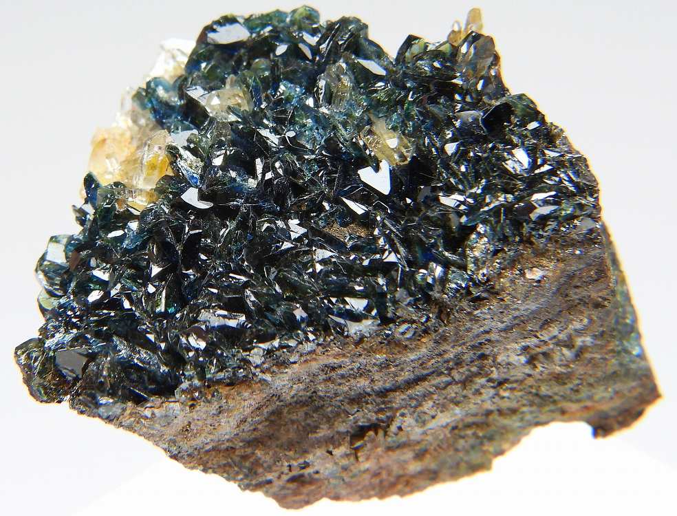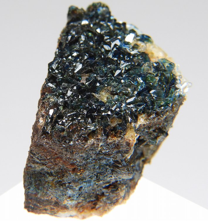 大変美しい天藍石の結晶群。透明度の高い結晶が群生します。