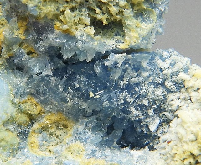 鮮やかなブルーの結晶が綺麗な燐酸塩鉱物です。パラボー石が共生します。
