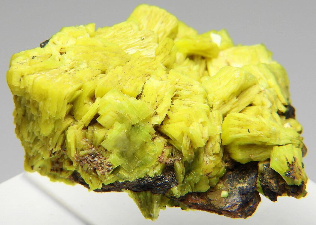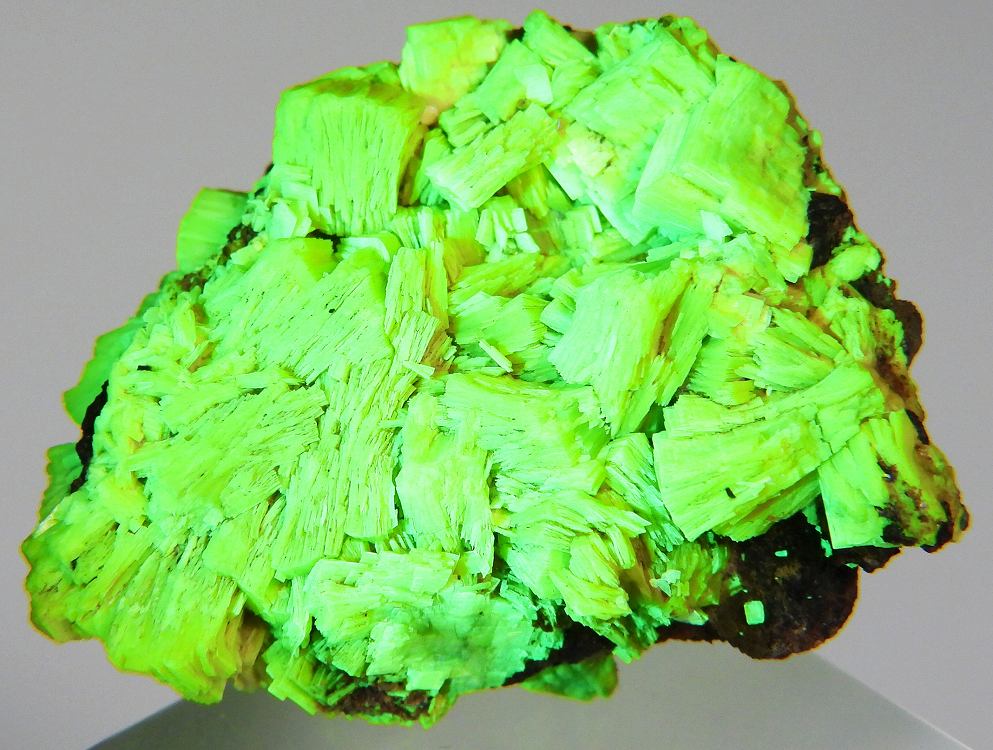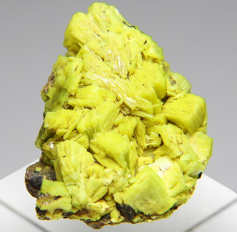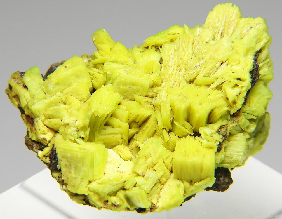 鮮やかな蛍光黄色の大変リッチな得難い結晶群です。紫外線長波で明るい蛍光を発します。約500μSv/h。