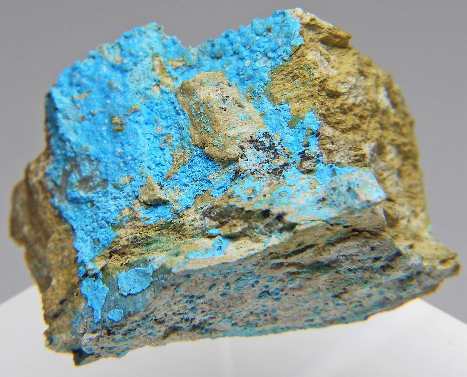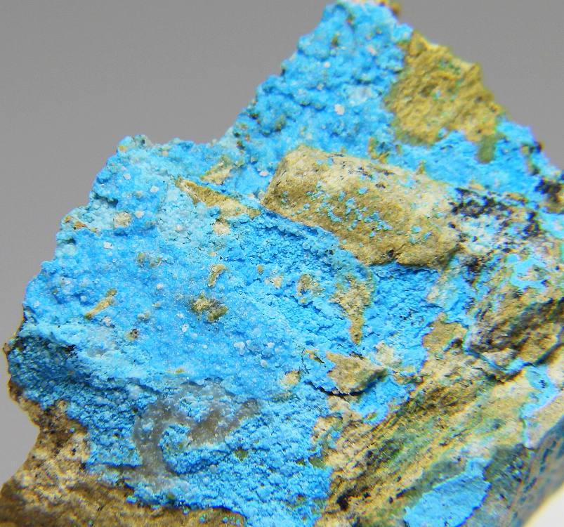 産出の極めて珍しい鮮やかな青色の球状鉱物。Y,Gd,Dyなどの希元素を含む鉱物で非常にリッチな結晶群が見られます。(原産地標本)