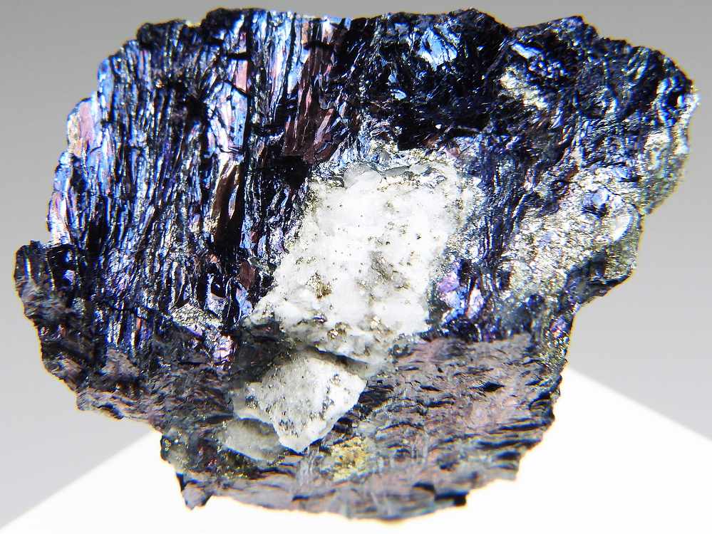 立派なコベリンを産した有名産地ですが入手困難な品になりつつあります。独特のブルーのイリデッセンスが綺麗な標本です。