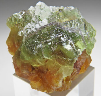 イエロー、グリーン、パープルのゾーニングが美しいマルチカラーの結晶。表層は白熱灯下でカラーチェンジが見られます。