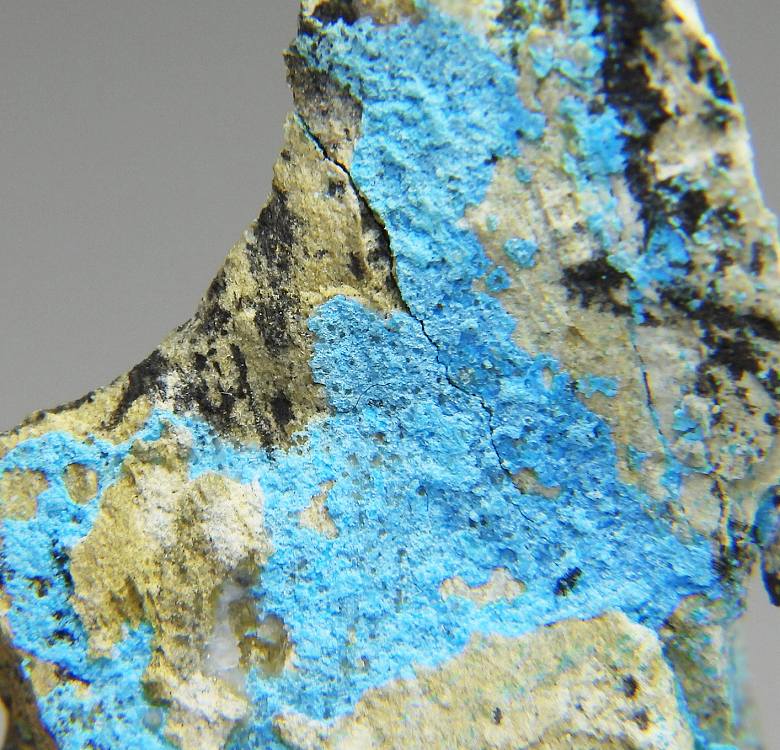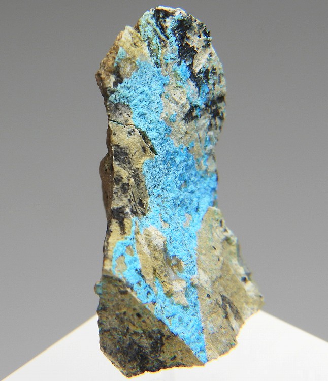産出の極めて珍しい鮮やかな青色の球状鉱物。Y,Gd,Dyなどの希元素を含む鉱物で非常にリッチな結晶群が見られます。(原産地標本)