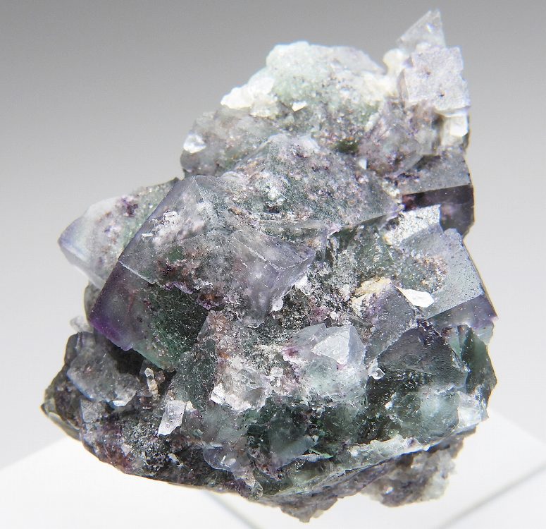 迷彩色の美しい結晶群。紫外線長波で蛍光し白熱灯下でカラーチェンジします。