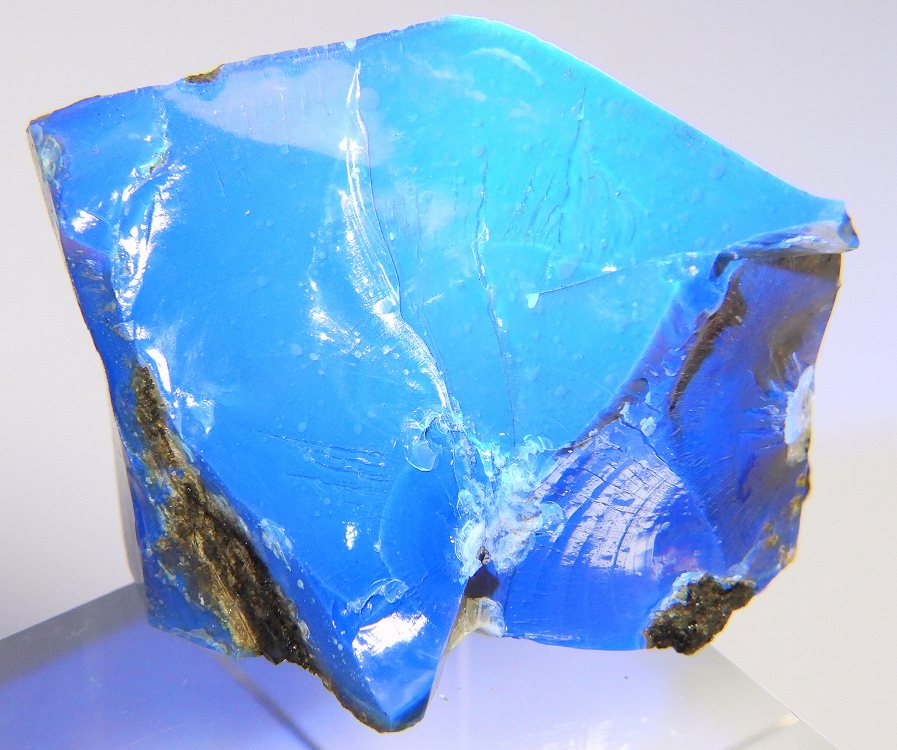 インドネシア産のブルーアンバー。紫外線長波を照射すると明るい蛍光を発します。