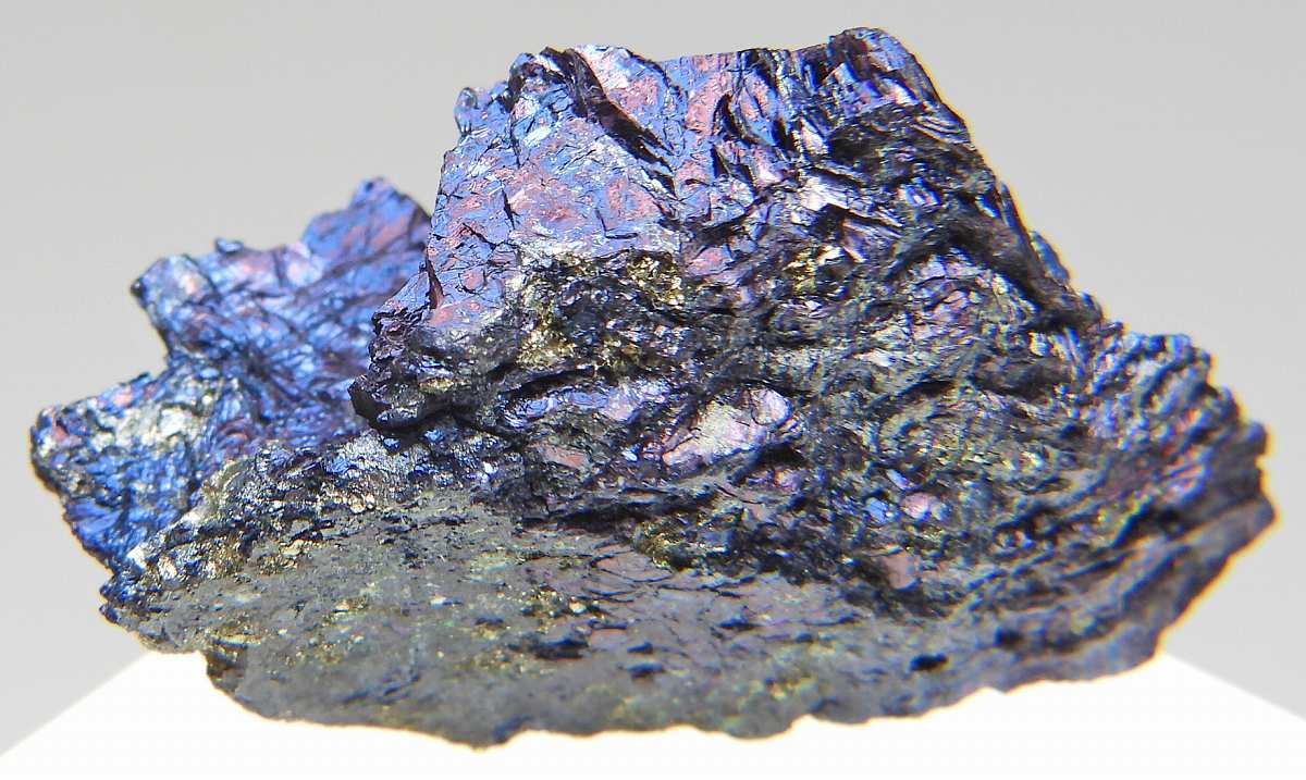立派なコベリンを産した有名産地ですが入手困難な品になりつつあります。独特のブルーのイリデッセンスが綺麗な標本です。