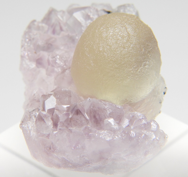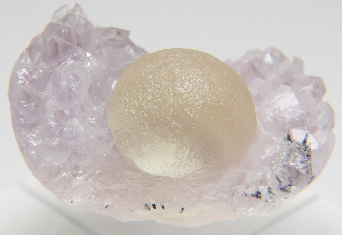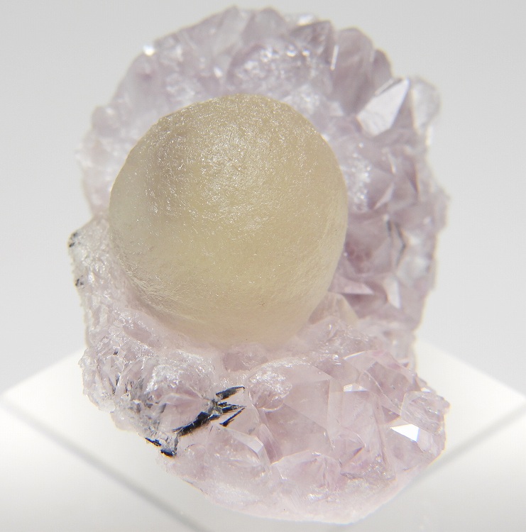 アメシスト上に成長した球状結晶です。