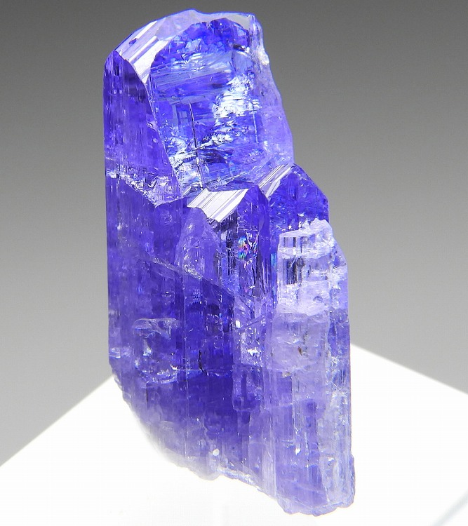 大変美しい多色性が明瞭なタンザナイトの結晶です。通常光源下で撮影。※液晶モニターの前では偏光された光源の影響で写真よりさらに多色性が極端に強調されて見えます。