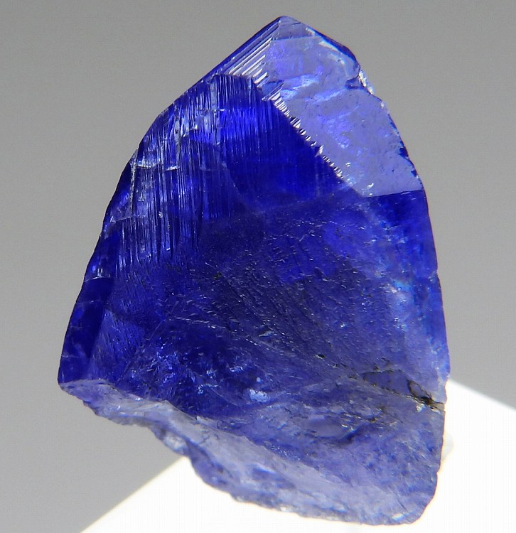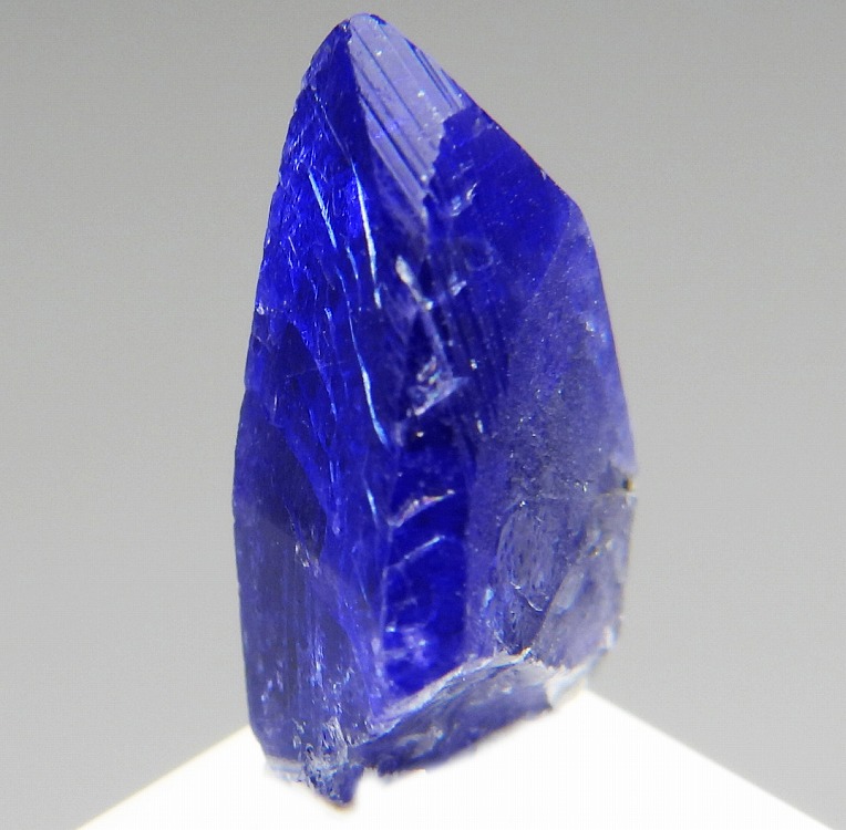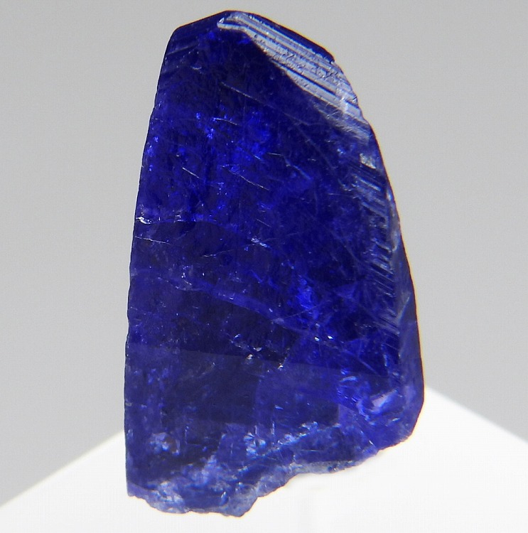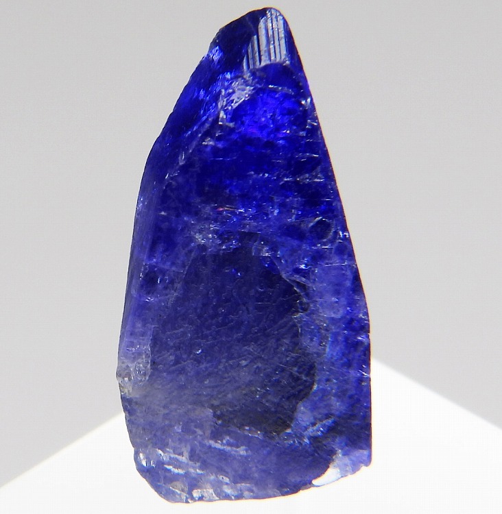 大変美しい多色性が明瞭なタンザナイトの結晶です。通常光源下で撮影。※液晶モニターの前では偏光された光源の影響で写真よりさらに多色性が極端に強調されて見えます。