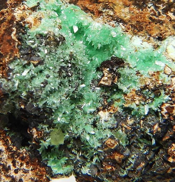 空隙にニッケル華の綺麗な結晶群が見られます。