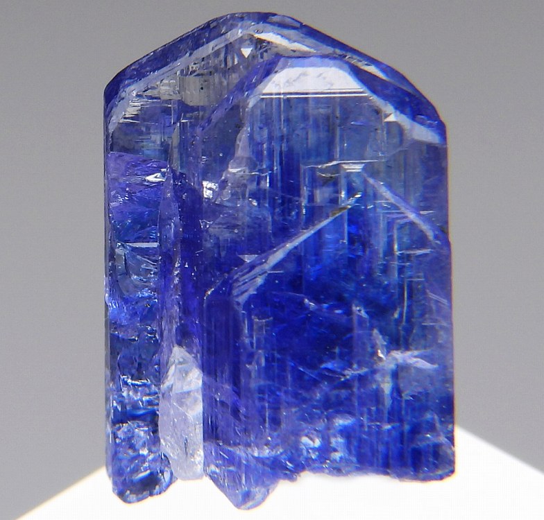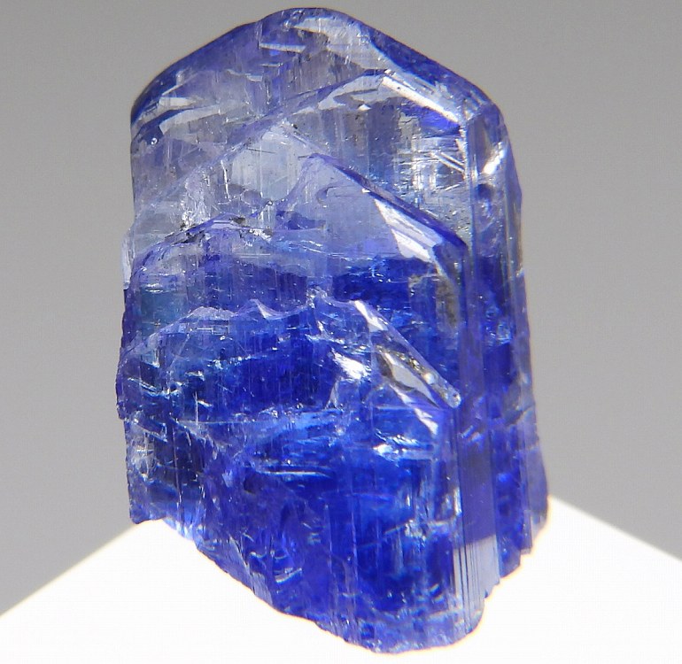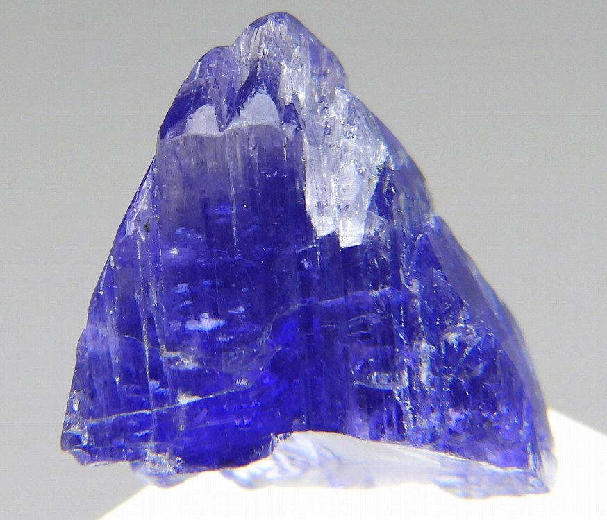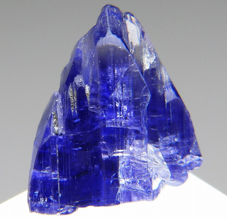 大変美しい多色性が明瞭なタンザナイトの結晶です。通常光源下で撮影。※液晶モニターの前では偏光された光源の影響で写真よりさらに多色性が極端に強調されて見えます。