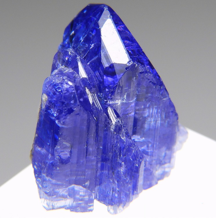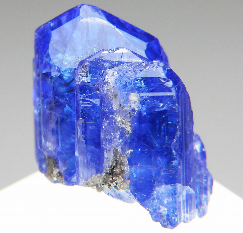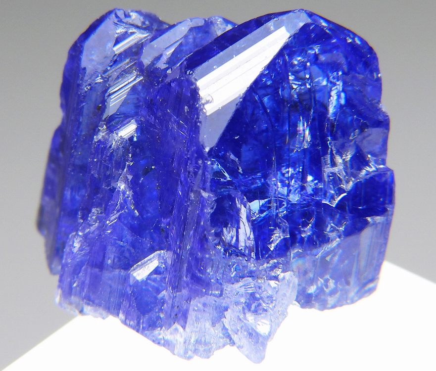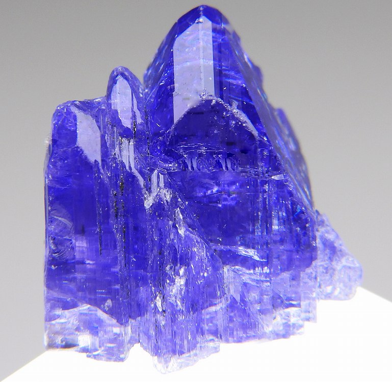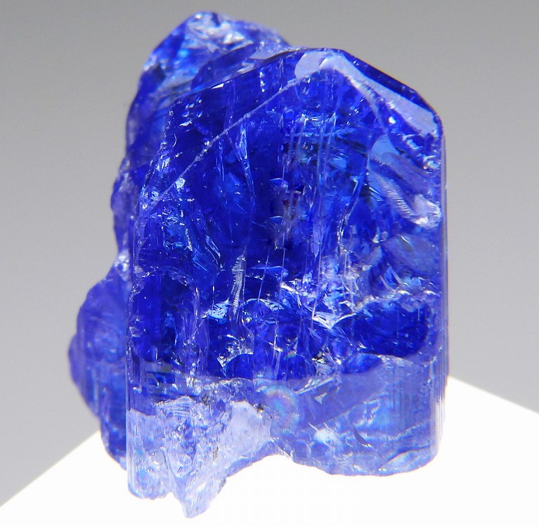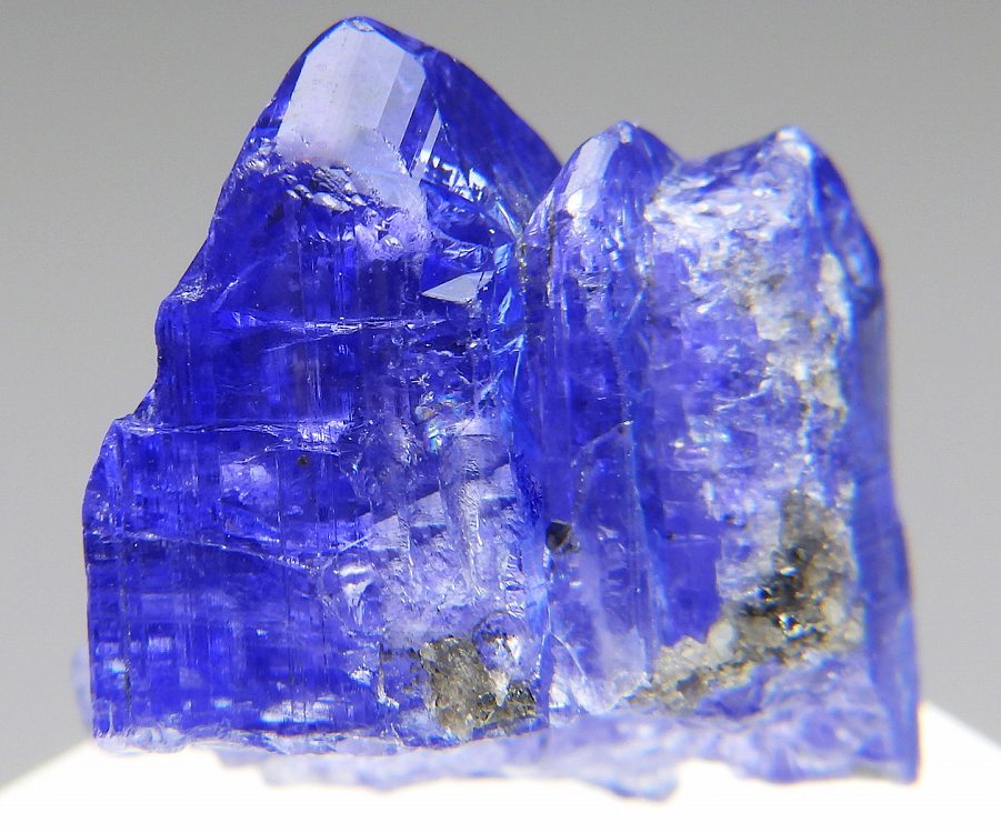 大変美しい多色性が明瞭なタンザナイトの結晶です。通常光源下で撮影。※液晶モニターの前では偏光された光源の影響で写真よりさらに多色性が極端に強調されて見えます。