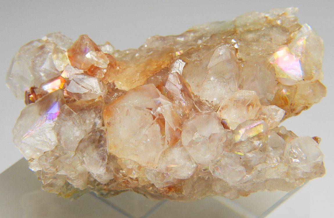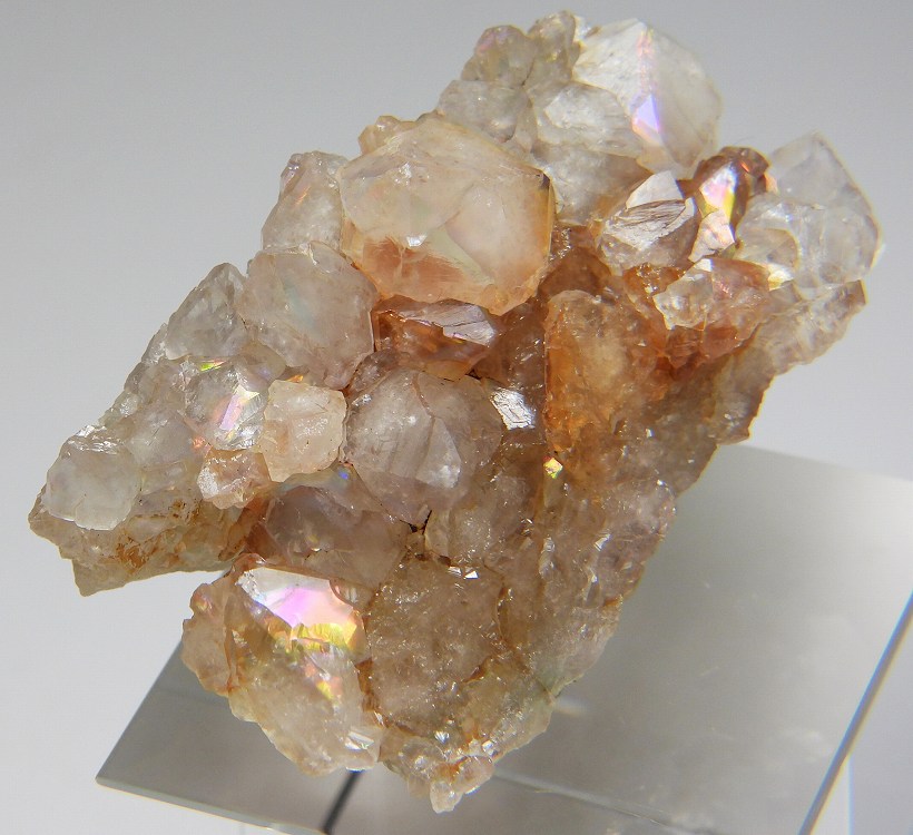 綺麗なフラッシュピンク系の干渉色が結晶内部に見られる美しい天然の虹水晶です。干渉色は結晶構造に起因します。