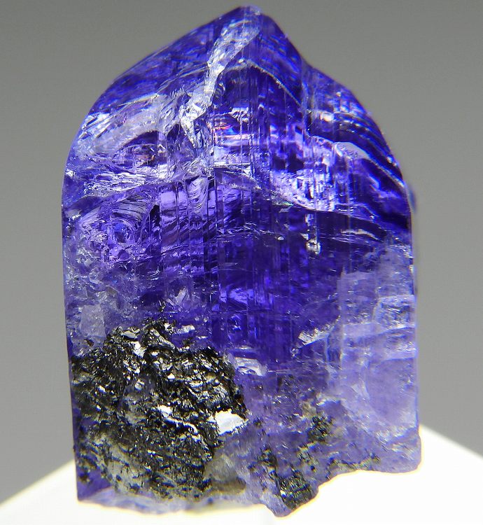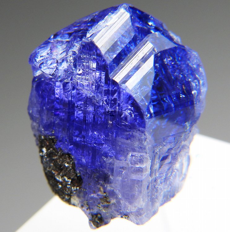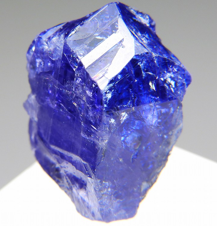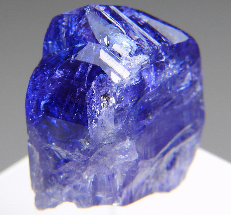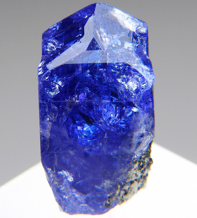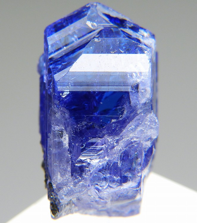 大変美しい多色性が明瞭なタンザナイトの結晶です。通常光源下で撮影。※液晶モニターの前では偏光された光源の影響で写真よりさらに多色性が極端に強調されて見えます。