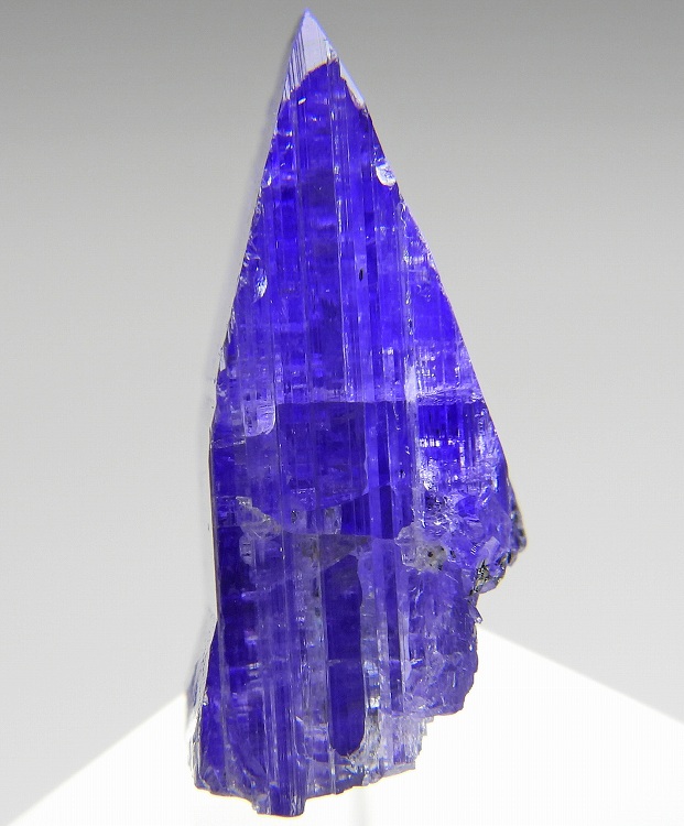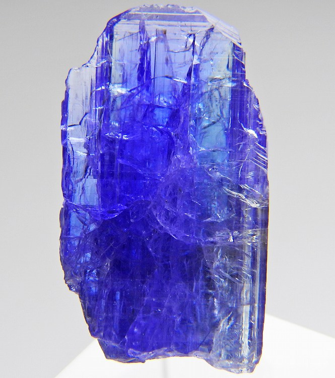 大変美しい多色性が明瞭なタンザナイトの結晶です。通常光源下で撮影。※液晶モニターの前では偏光された光源の影響で写真よりさらに多色性が極端に強調されて見えます。