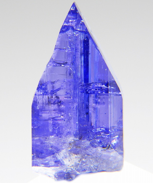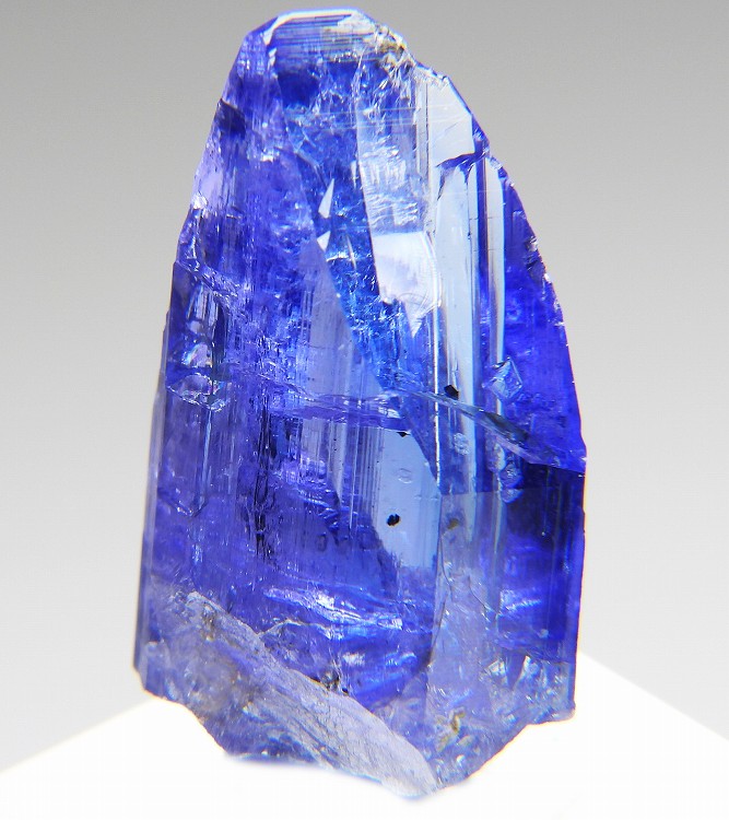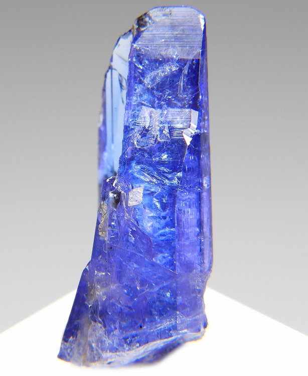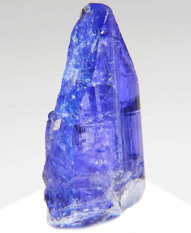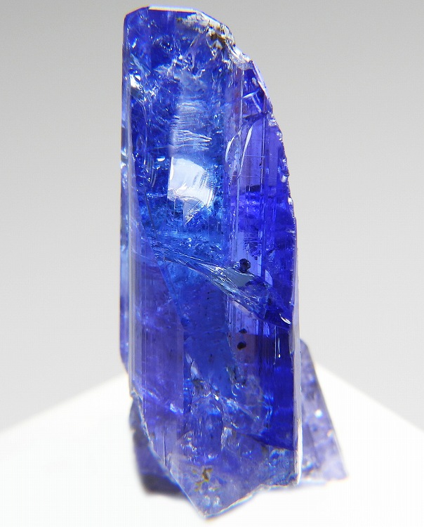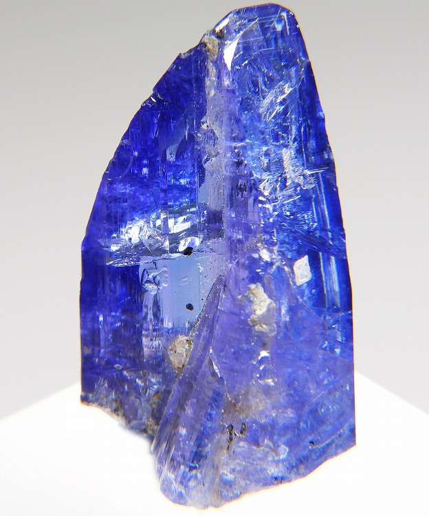 大変美しい多色性が明瞭なタンザナイトの結晶です。通常光源下で撮影。※液晶モニターの前では偏光された光源の影響で写真よりさらに多色性が極端に強調されて見えます。