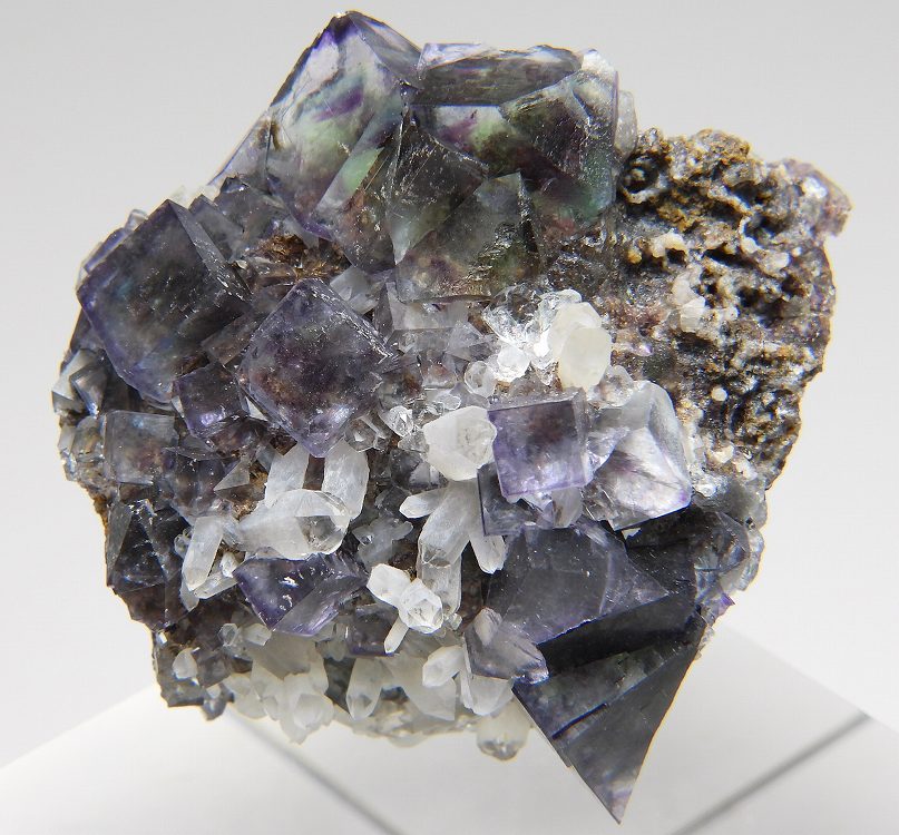 迷彩色の美しい結晶群。紫外線長波で蛍光し白熱灯下でカラーチェンジします。