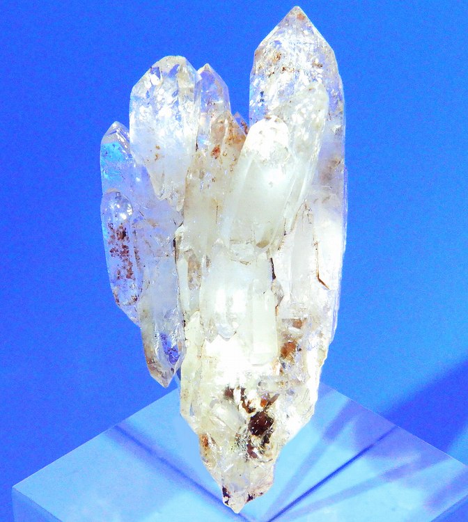 2023年初頭に炭化水素化合物を含む水晶の発見がこの産地でありました。産出初期の大型クラスターです。紫外線長波で明るく蛍光します。