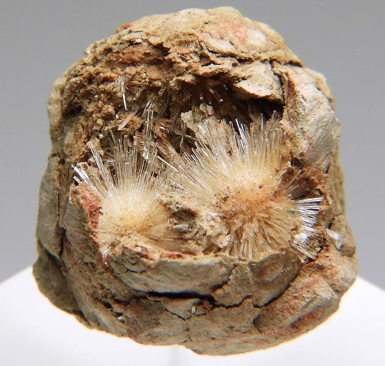 繊細な放射状結晶が綺麗な標本です。紫外線長波で蛍光します。