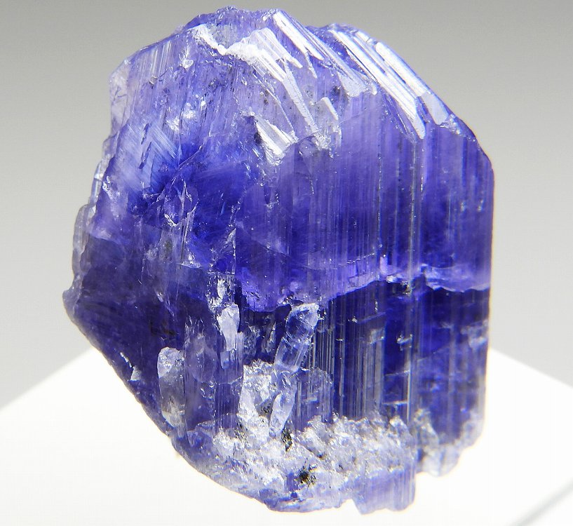 大変美しい多色性が明瞭なタンザナイトの結晶です。通常光源下で撮影。※液晶モニターの前では偏光された光源の影響で写真よりさらに多色性が極端に強調されて見えます。