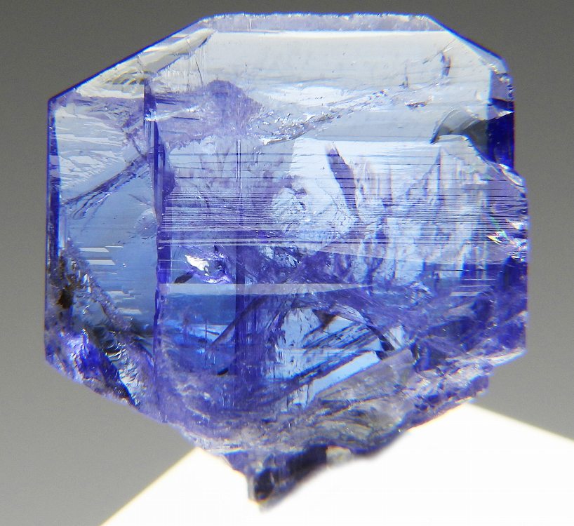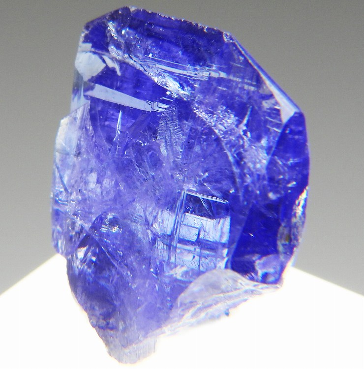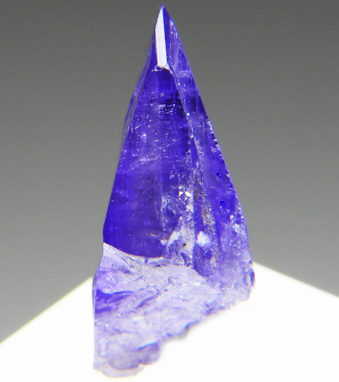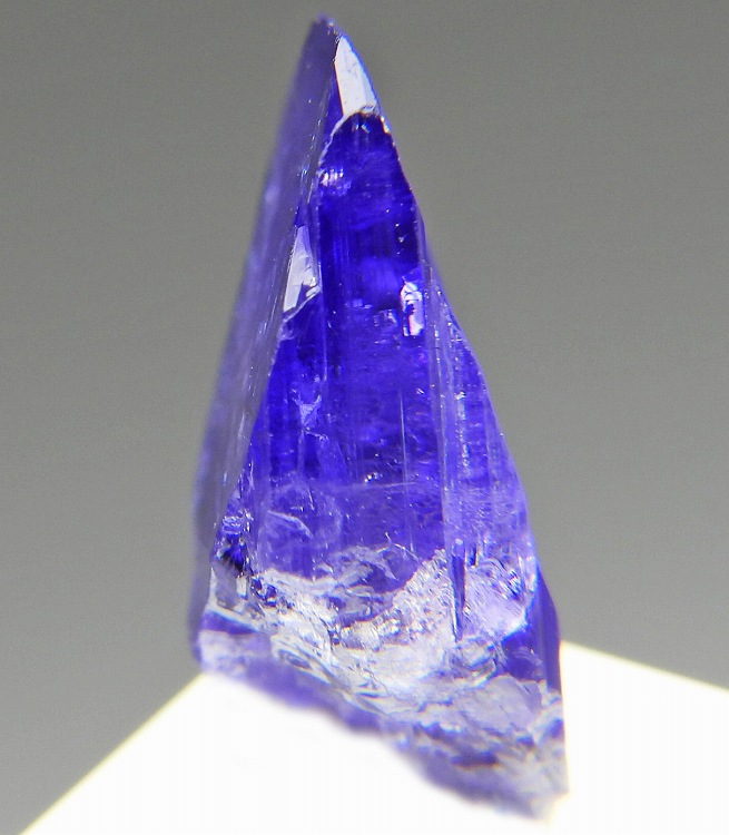 大変美しい多色性が明瞭なタンザナイトの結晶です。通常光源下で撮影。※液晶モニターの前では偏光された光源の影響で写真よりさらに多色性が極端に強調されて見えます。