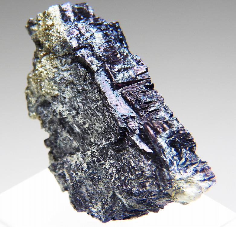 立派なコベリンを産した有名産地ですが入手困難な品になりつつあります。独特のブルーのイリデッセンスが綺麗な標本です。