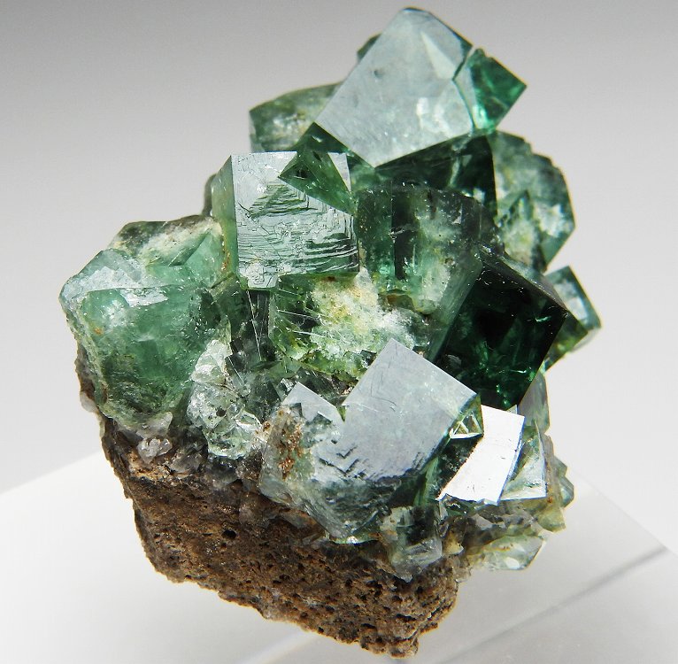 Pocket 42から産した高い透明度の美しい結晶群です。太陽光や紫外線長波で蛍光します。