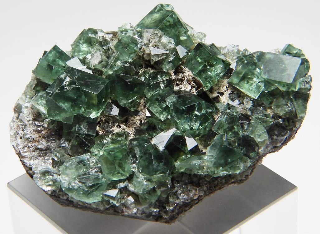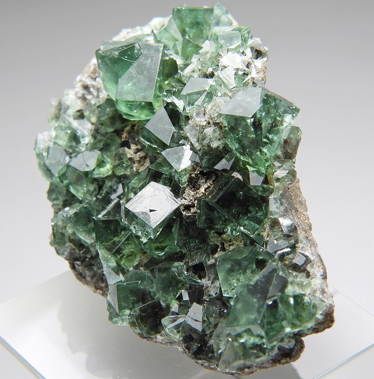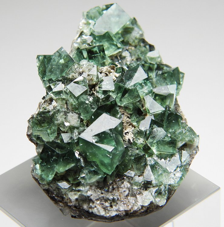 Pocket 42から産した高い透明度の美しい結晶群です。太陽光や紫外線長波で蛍光します。