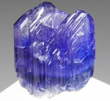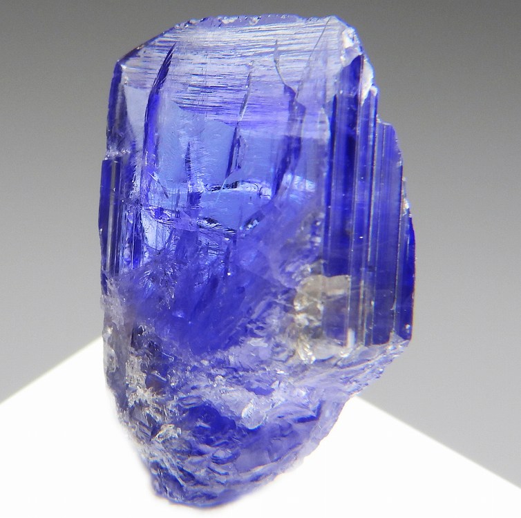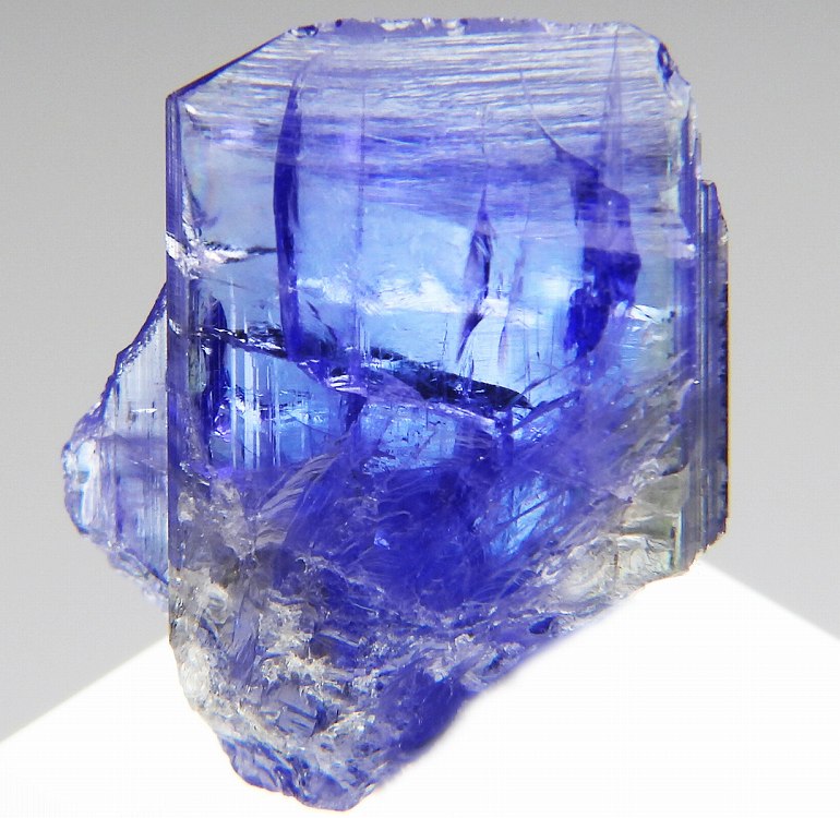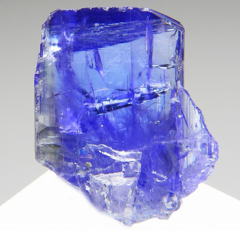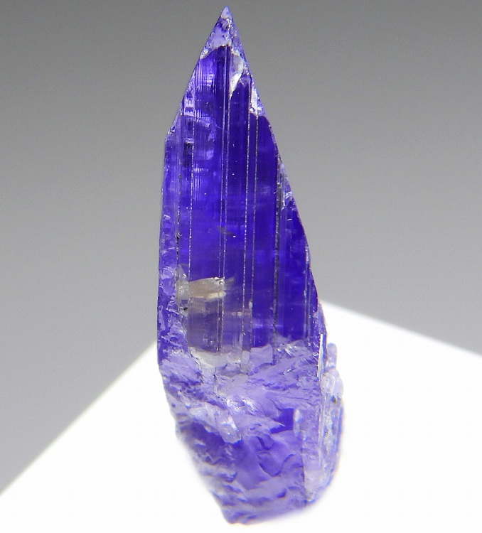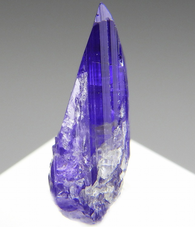 大変美しい多色性が明瞭なタンザナイトの結晶です。通常光源下で撮影。※液晶モニターの前では偏光された光源の影響で写真よりさらに多色性が極端に強調されて見えます。