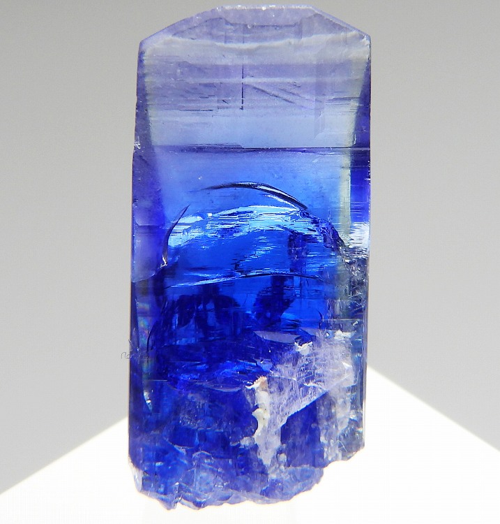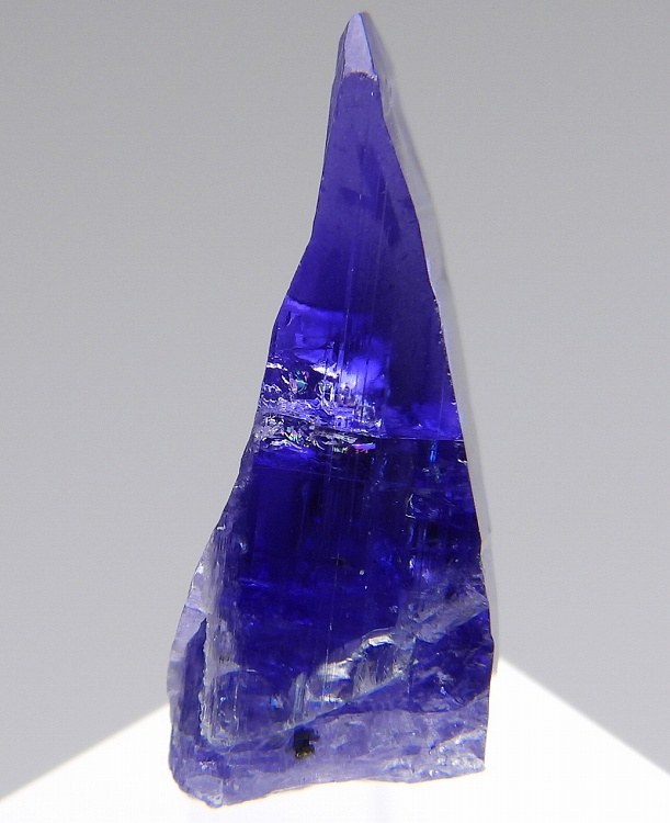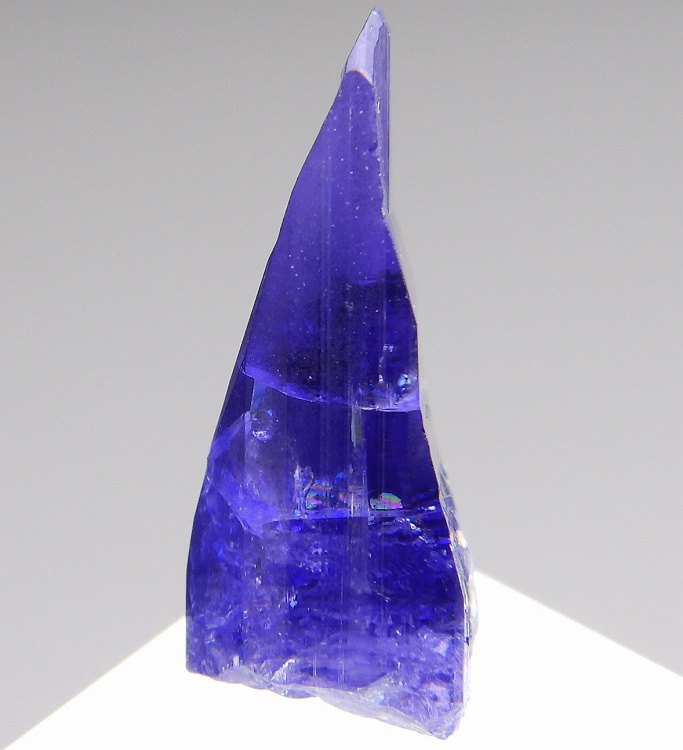 大変美しい多色性が明瞭なタンザナイトの結晶です。通常光源下で撮影。※液晶モニターの前では偏光された光源の影響で写真よりさらに多色性が極端に強調されて見えます。