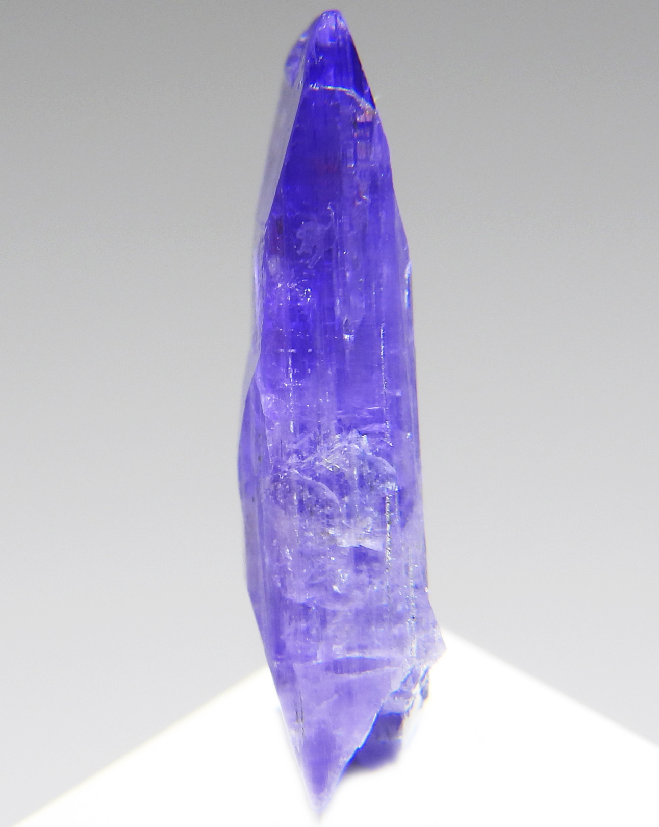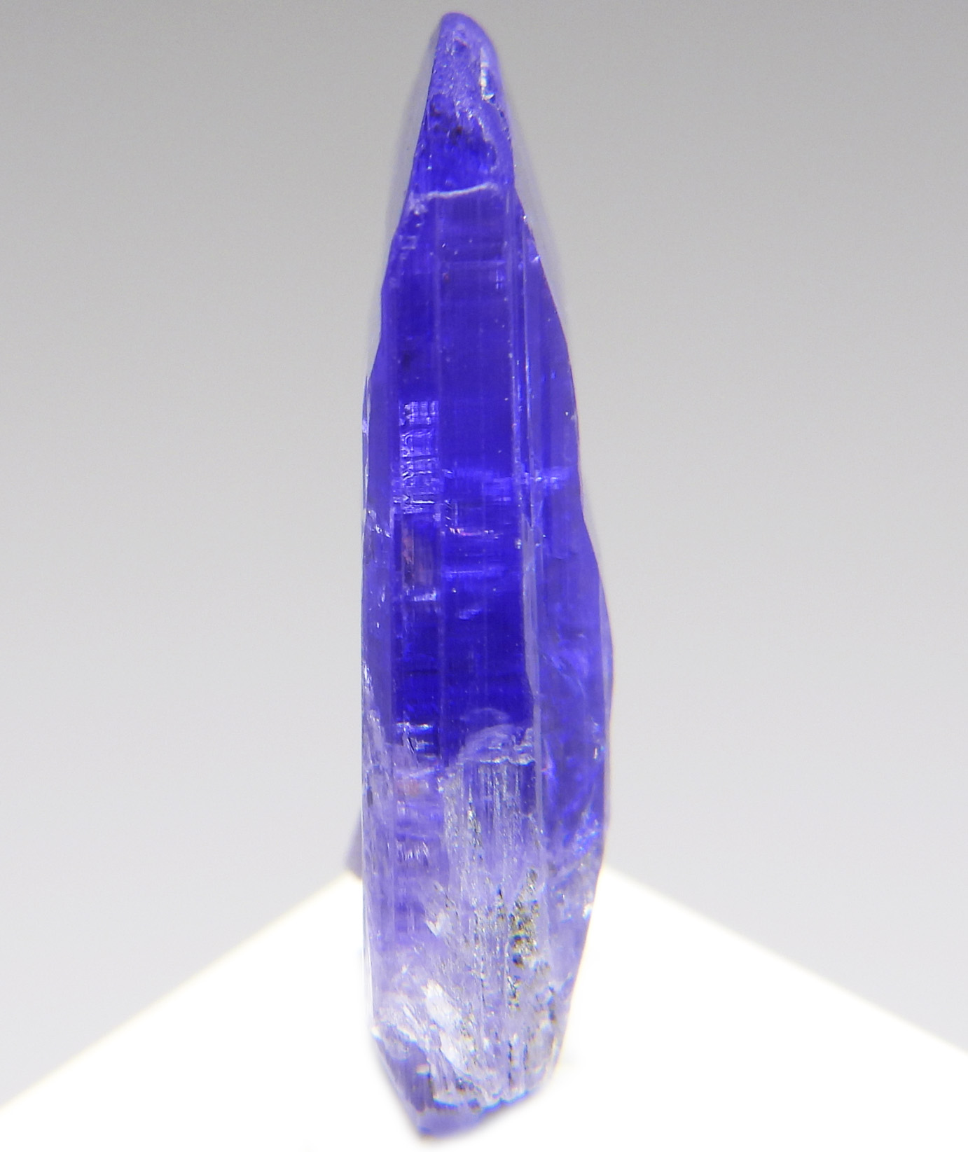 大変美しい多色性が明瞭なタンザナイトの結晶です。通常光源下で撮影。※液晶モニターの前では偏光された光源の影響で写真よりさらに多色性が極端に強調されて見えます。