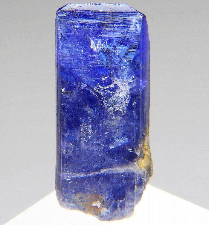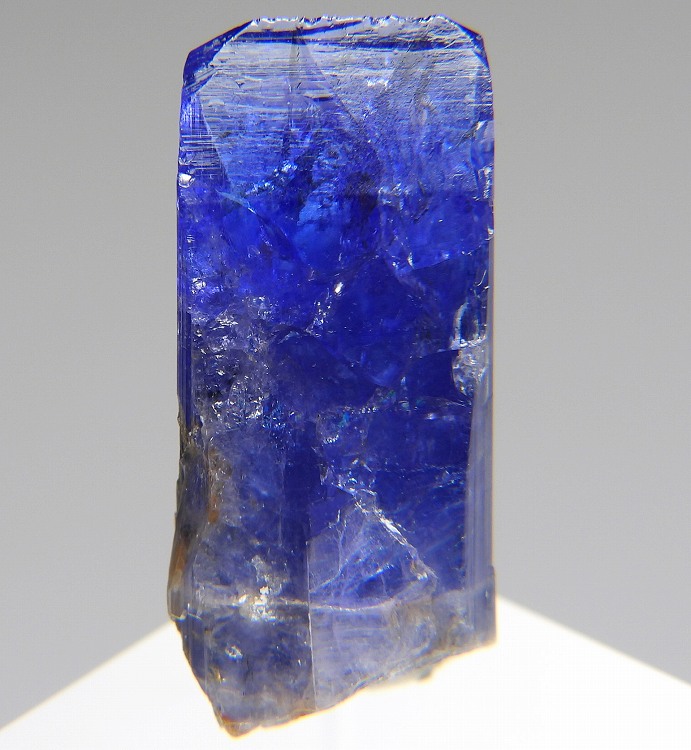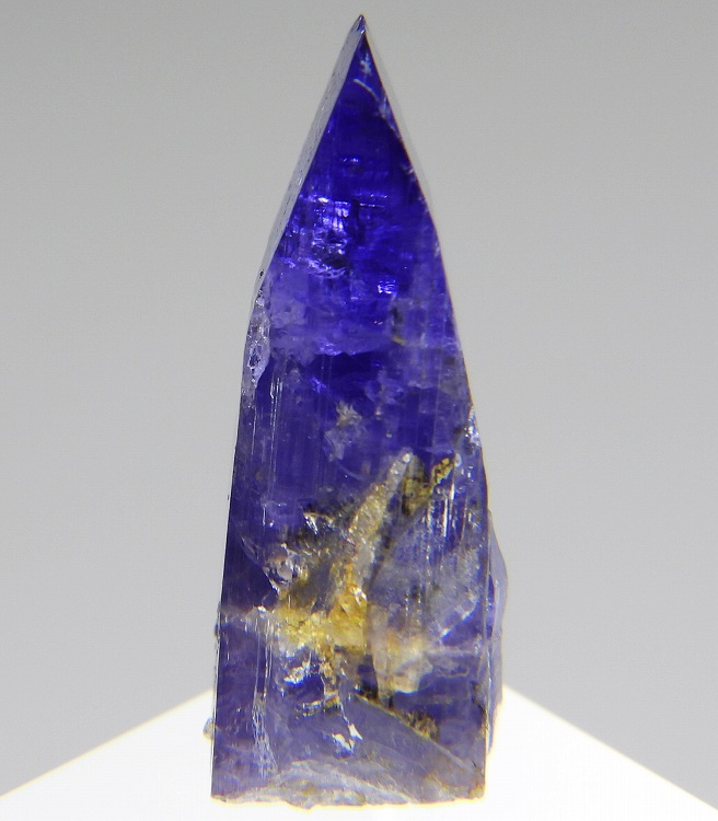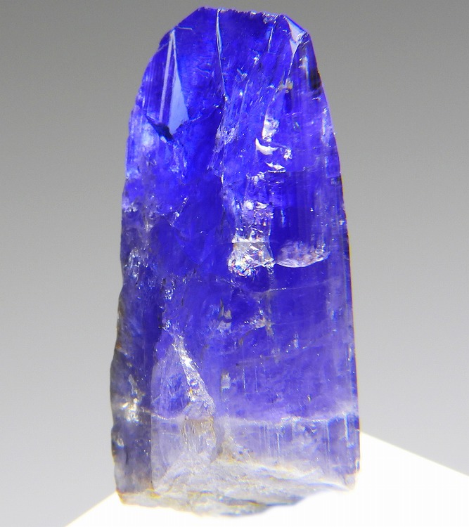 大変美しい多色性が明瞭なタンザナイトの結晶です。通常光源下で撮影。※液晶モニターの前では偏光された光源の影響で写真よりさらに多色性が極端に強調されて見えます。