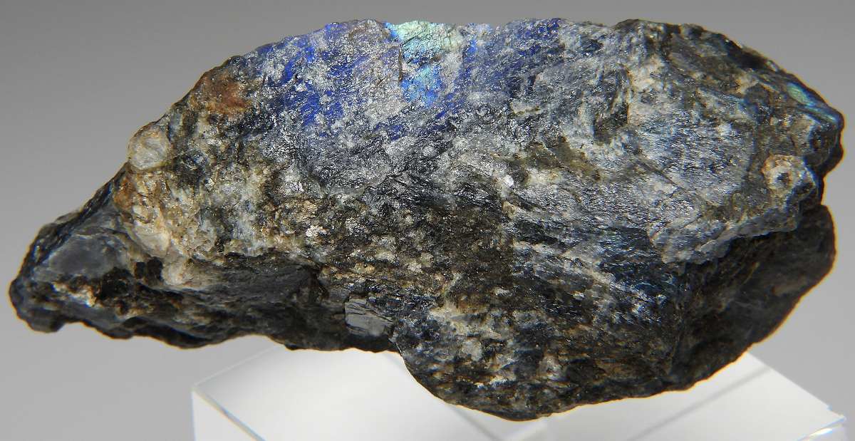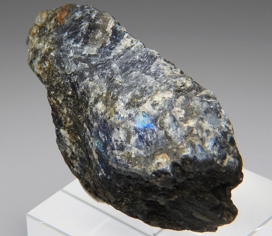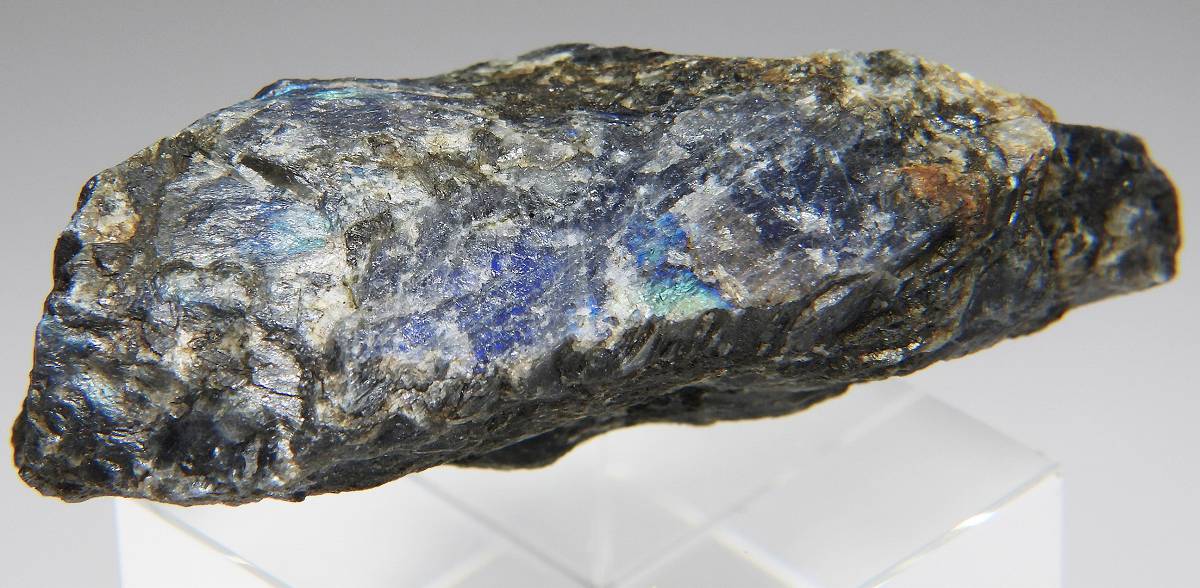 フィンランド産スペクトロライト。劈開面において鮮やかなシラーが見られます。未研磨品。