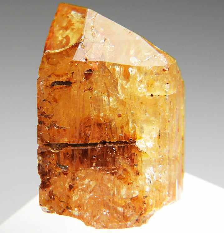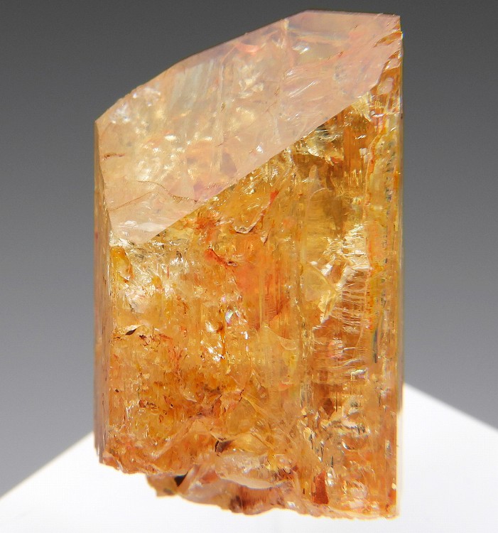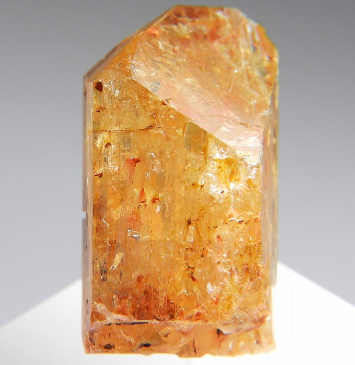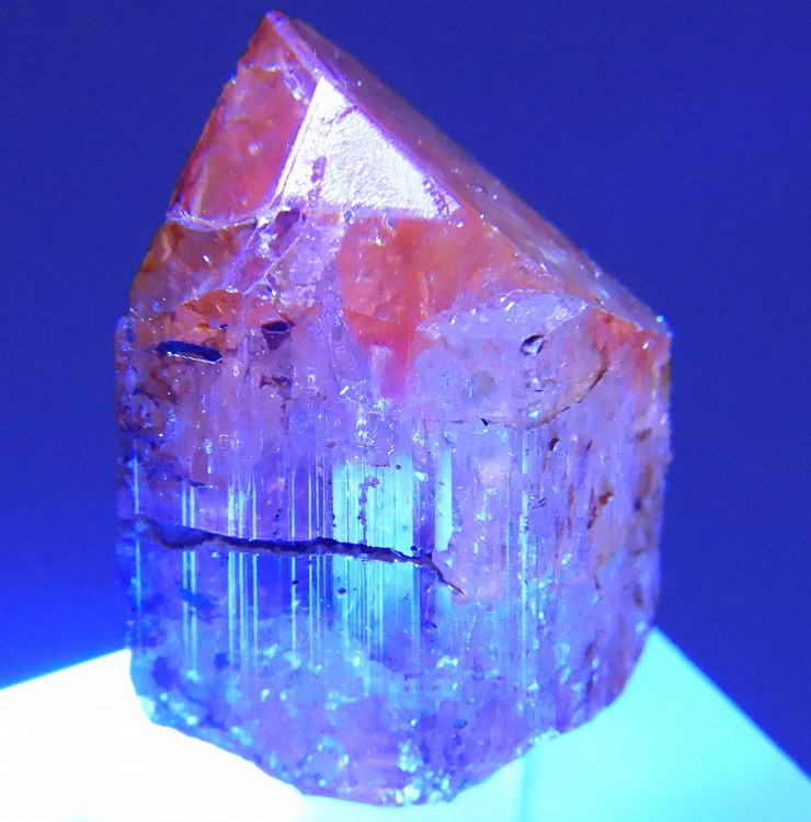 数少ないインペリアルトパーズの産地のひとつで非常に美しい単結晶です。紫外線長波で淡い赤色の蛍光が見られます。