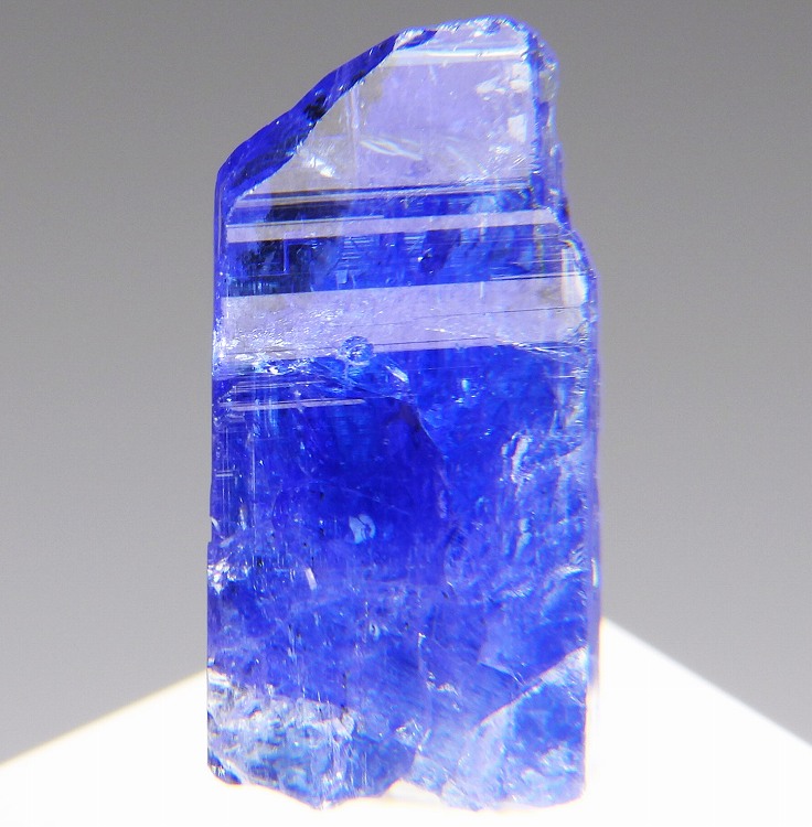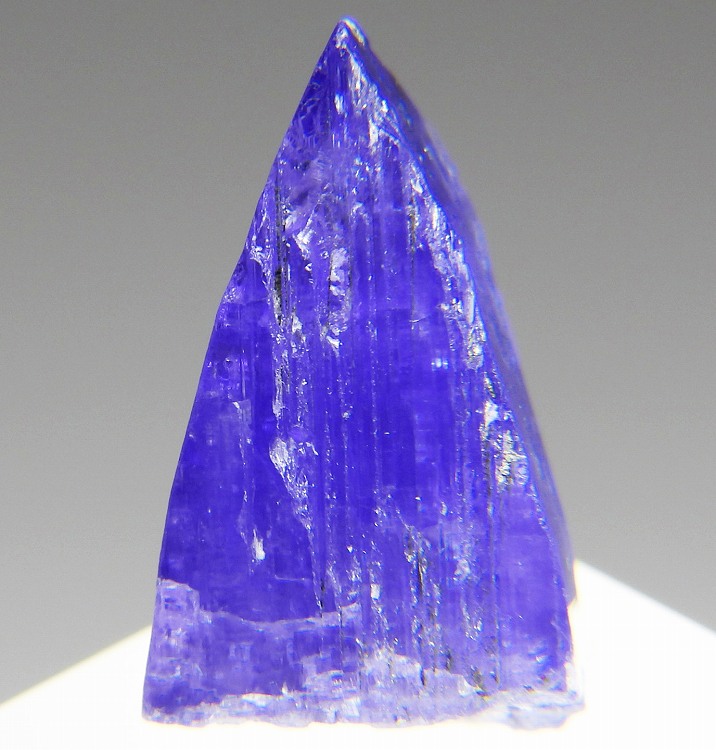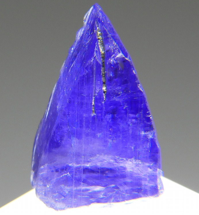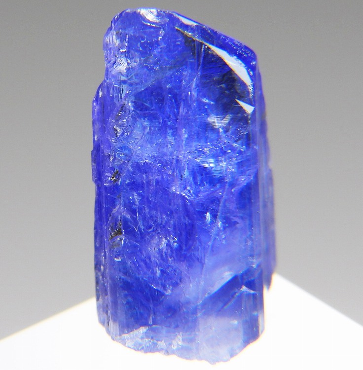 大変美しい多色性が明瞭なタンザナイトの結晶です。通常光源下で撮影。※液晶モニターの前では偏光された光源の影響で写真よりさらに多色性が極端に強調されて見えます。