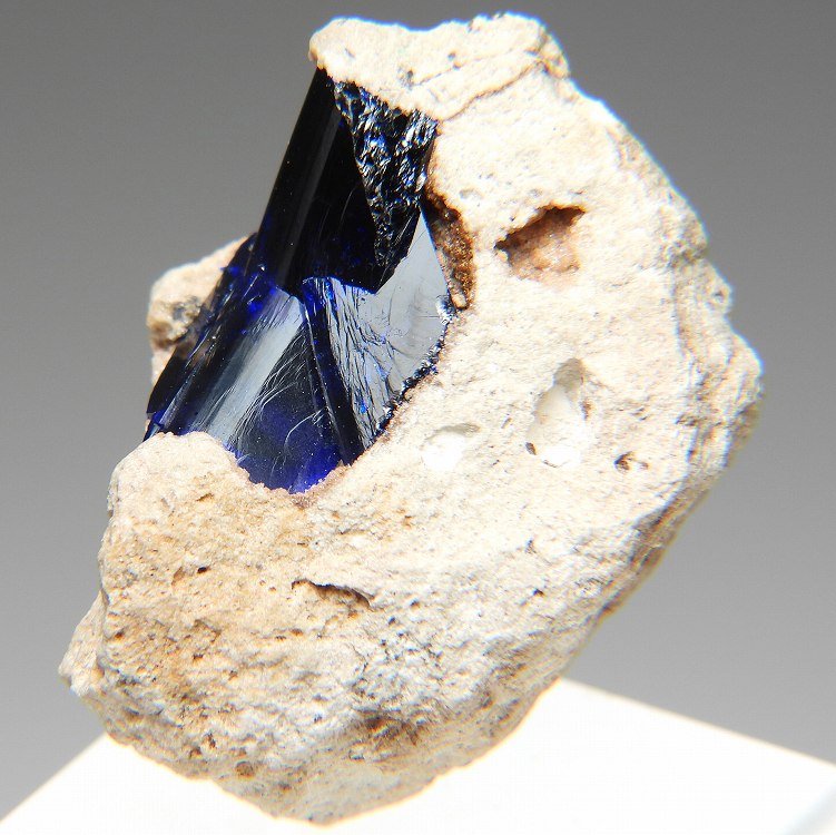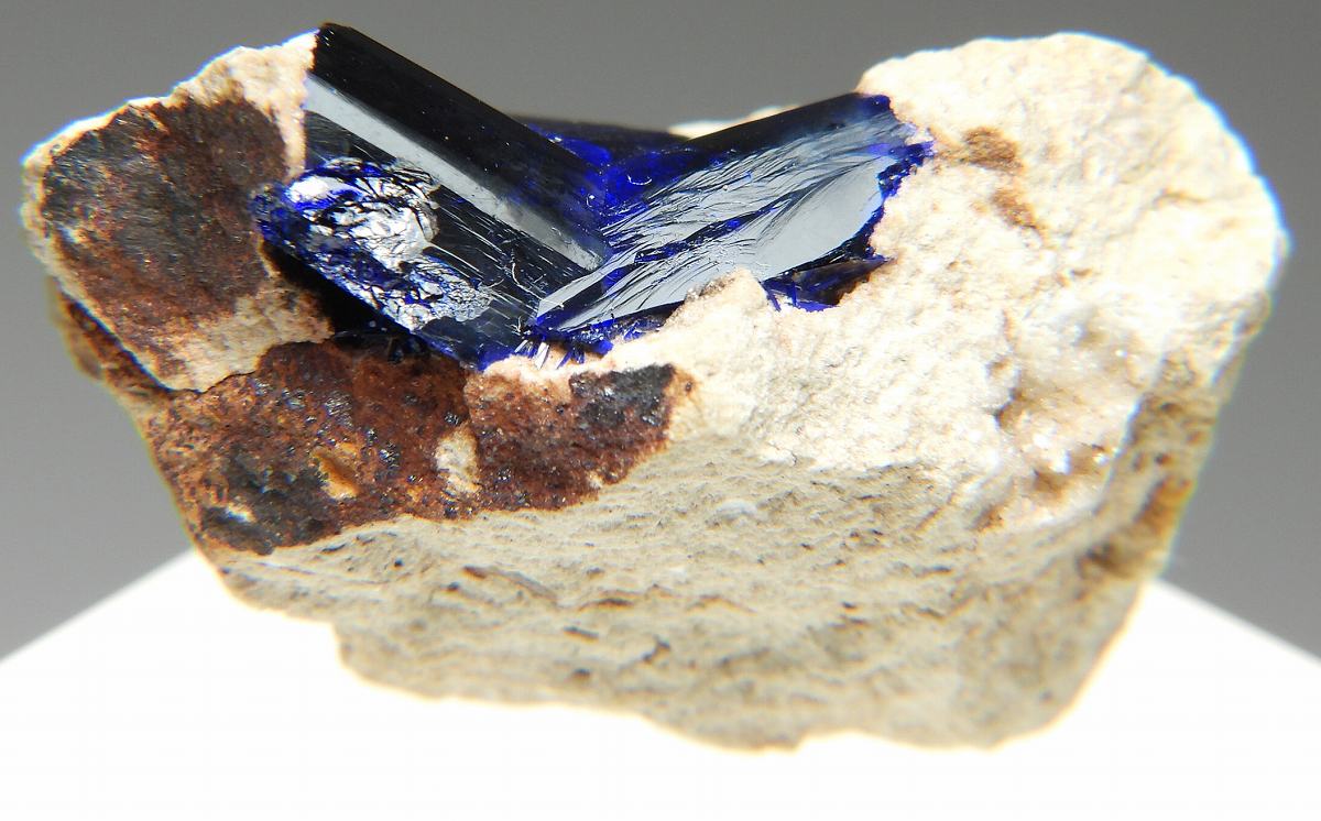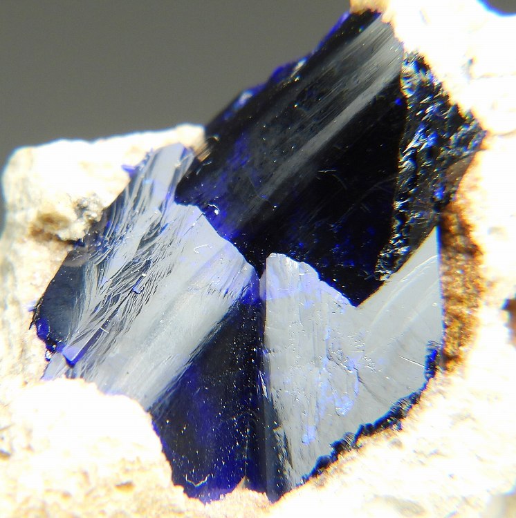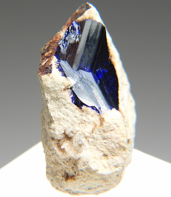 空隙に成長した艶やかで端正な藍銅鉱の結晶です。