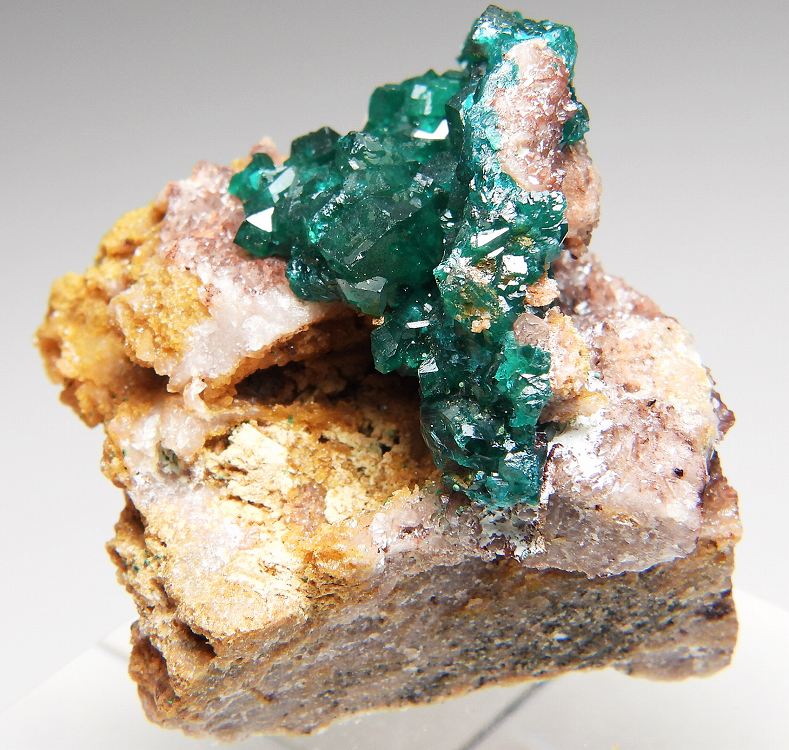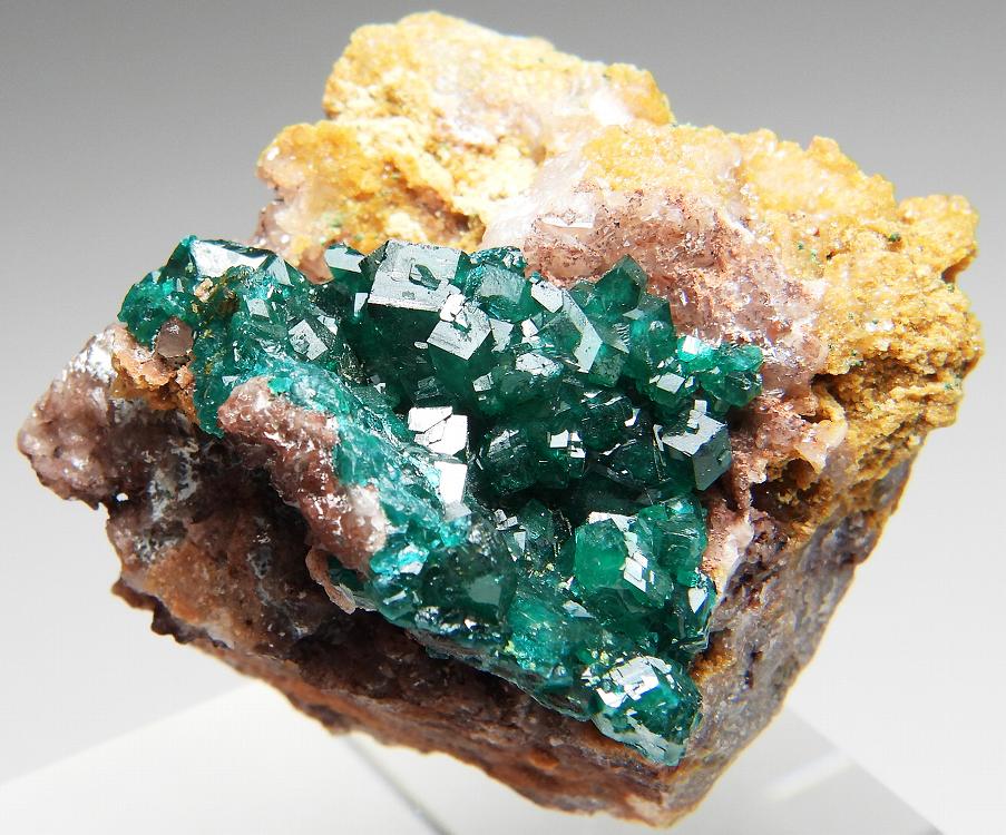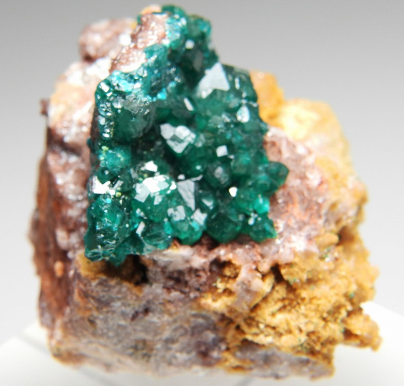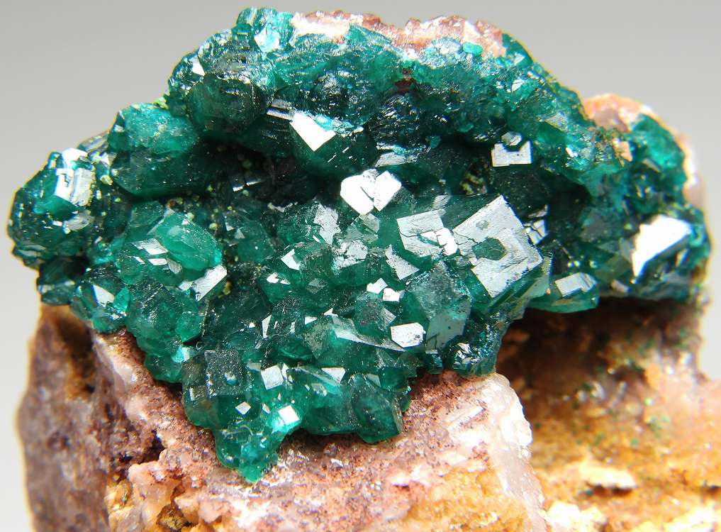 大変美しく艶やかな翠銅鉱の結晶群です。