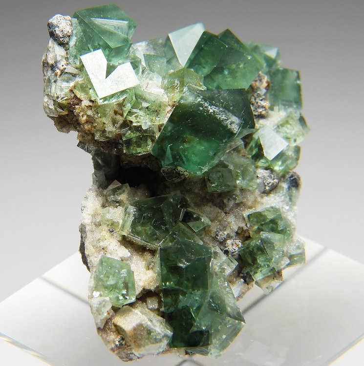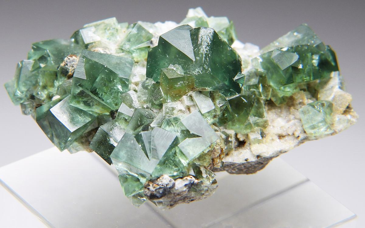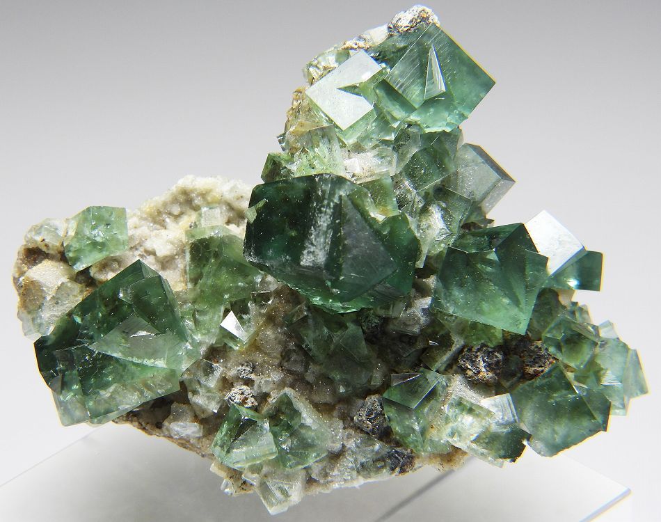 Pocket 42から産した高い透明度の美しい結晶群です。太陽光や紫外線長波で蛍光します。