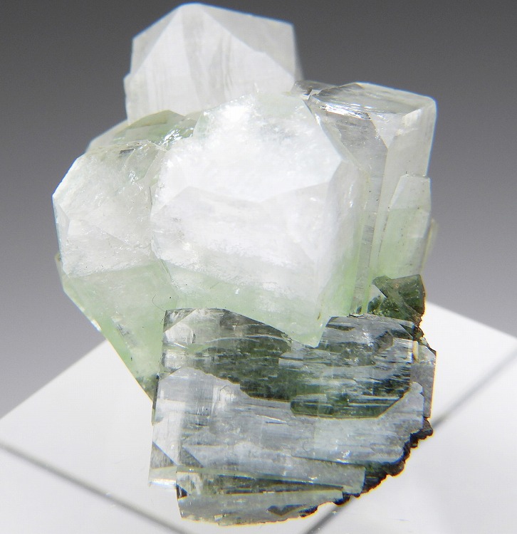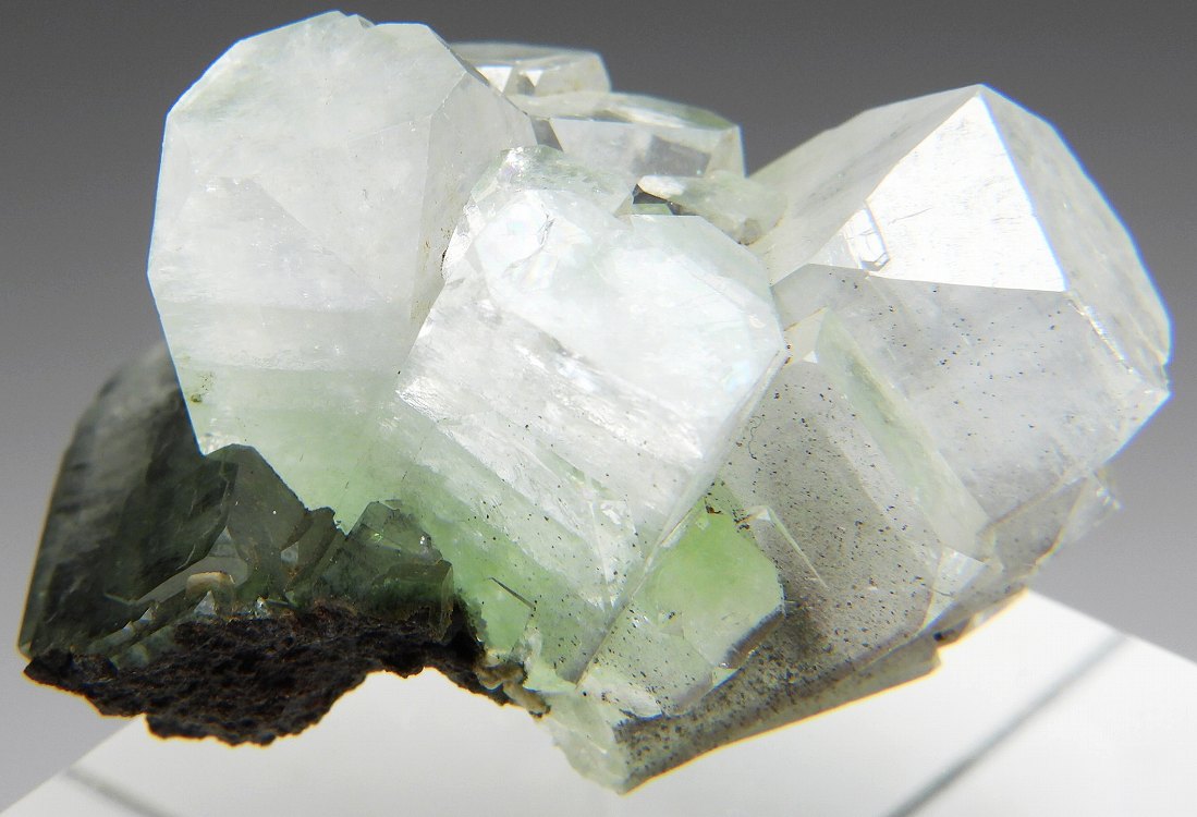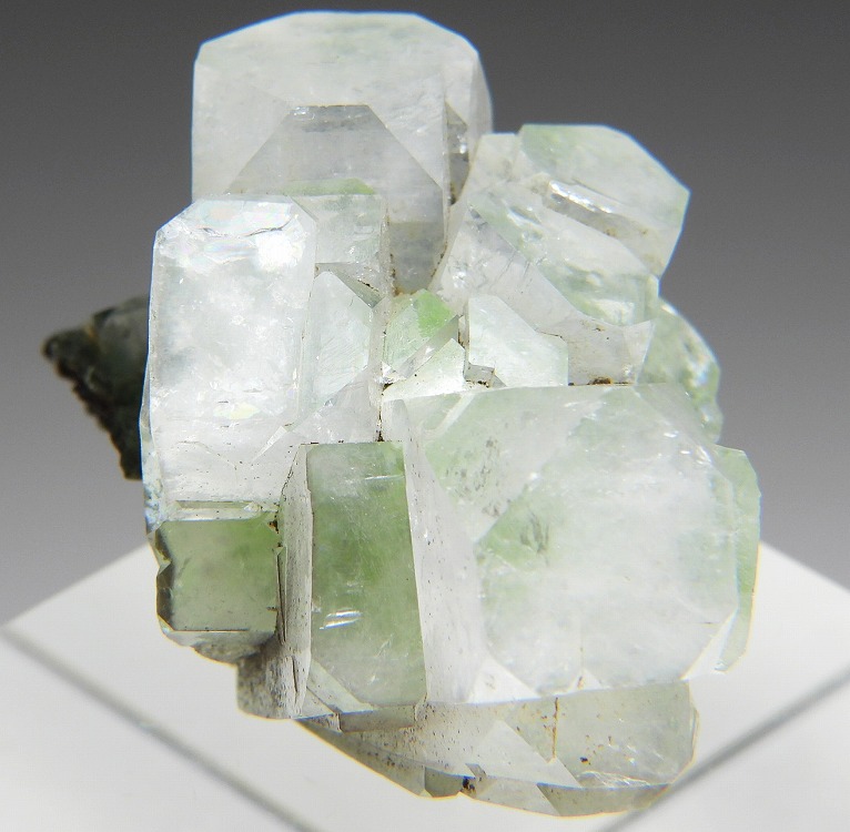 透明度の高い綺麗なグリーンアポフィライトの結晶群です。