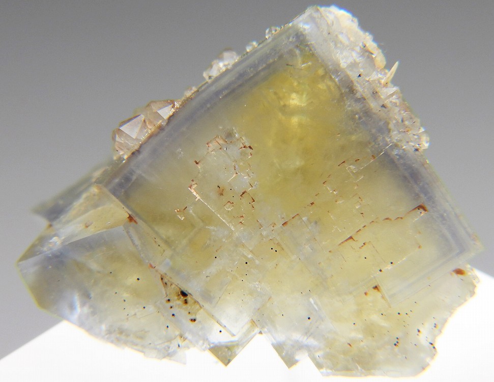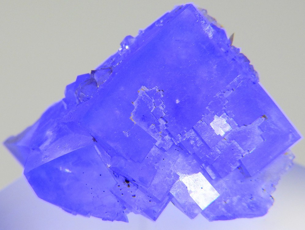 ブルーゾーニングが美しい結晶群。紫外線長波で蛍光します。