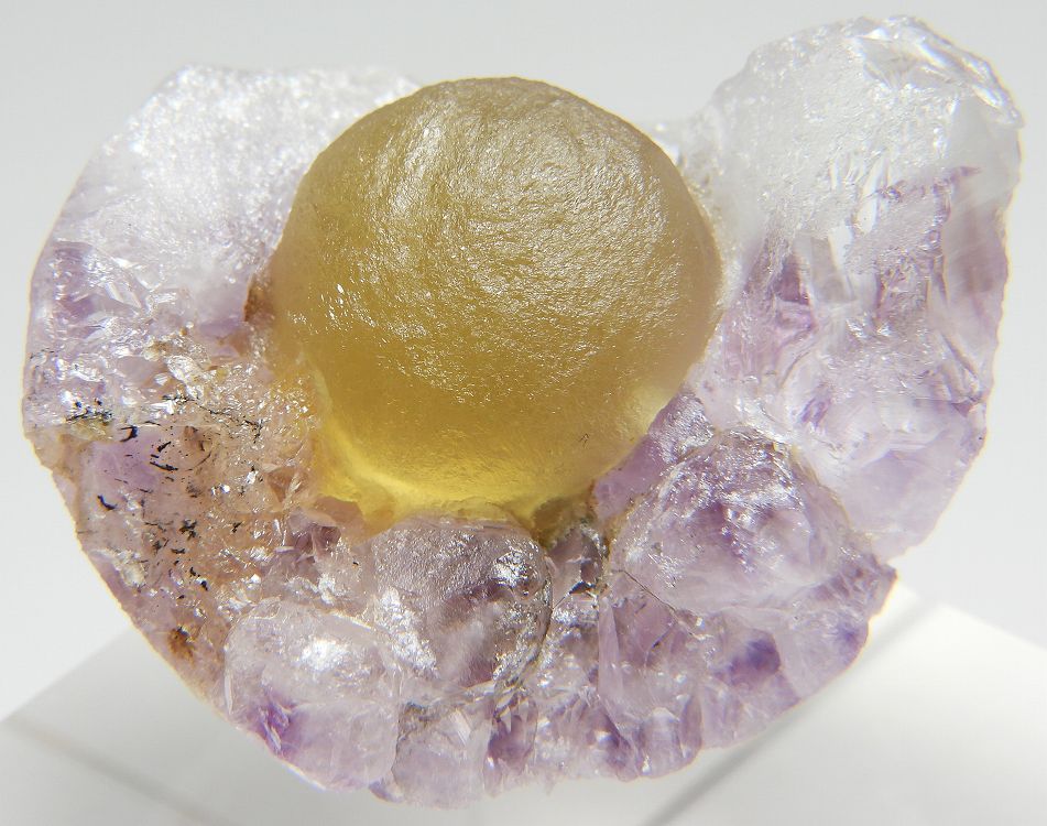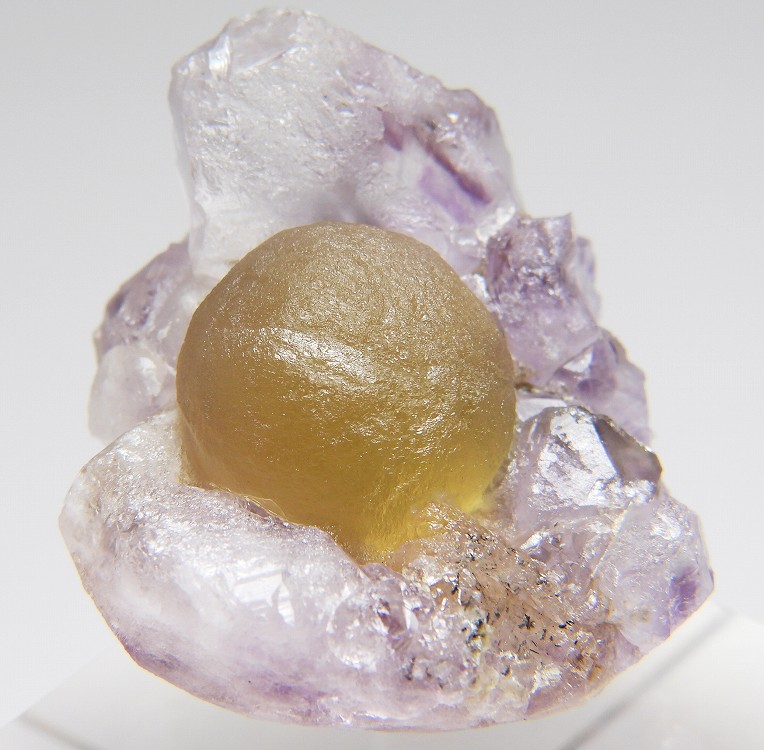 アメシスト上に成長した球状結晶です。