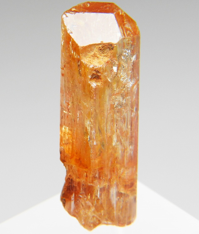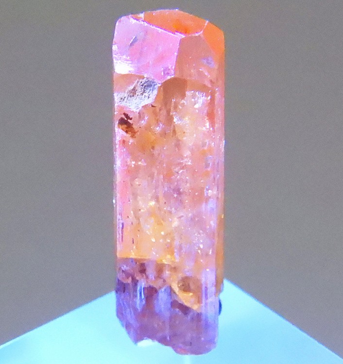 数少ないインペリアルトパーズの産地のひとつで非常に美しい単結晶です。紫外線長波で淡い赤色の蛍光が見られます。