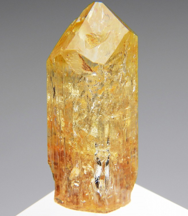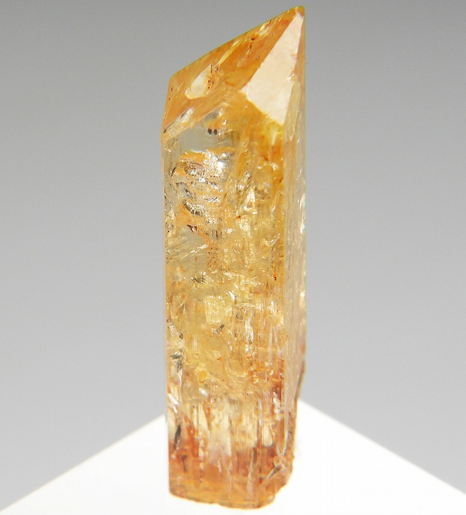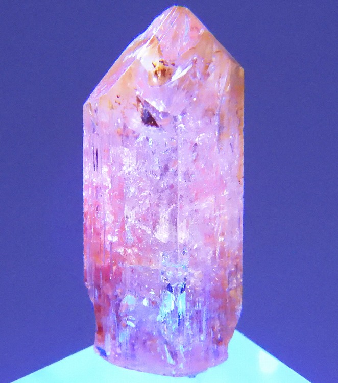 数少ないインペリアルトパーズの産地のひとつで非常に美しい単結晶です。紫外線長波で淡い赤色の蛍光が見られます。