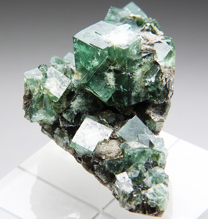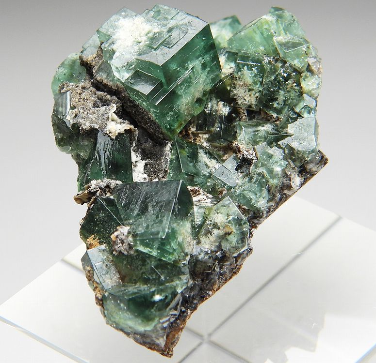 Pocket 42から産した高い透明度の美しい結晶群です。太陽光や紫外線長波で蛍光します。